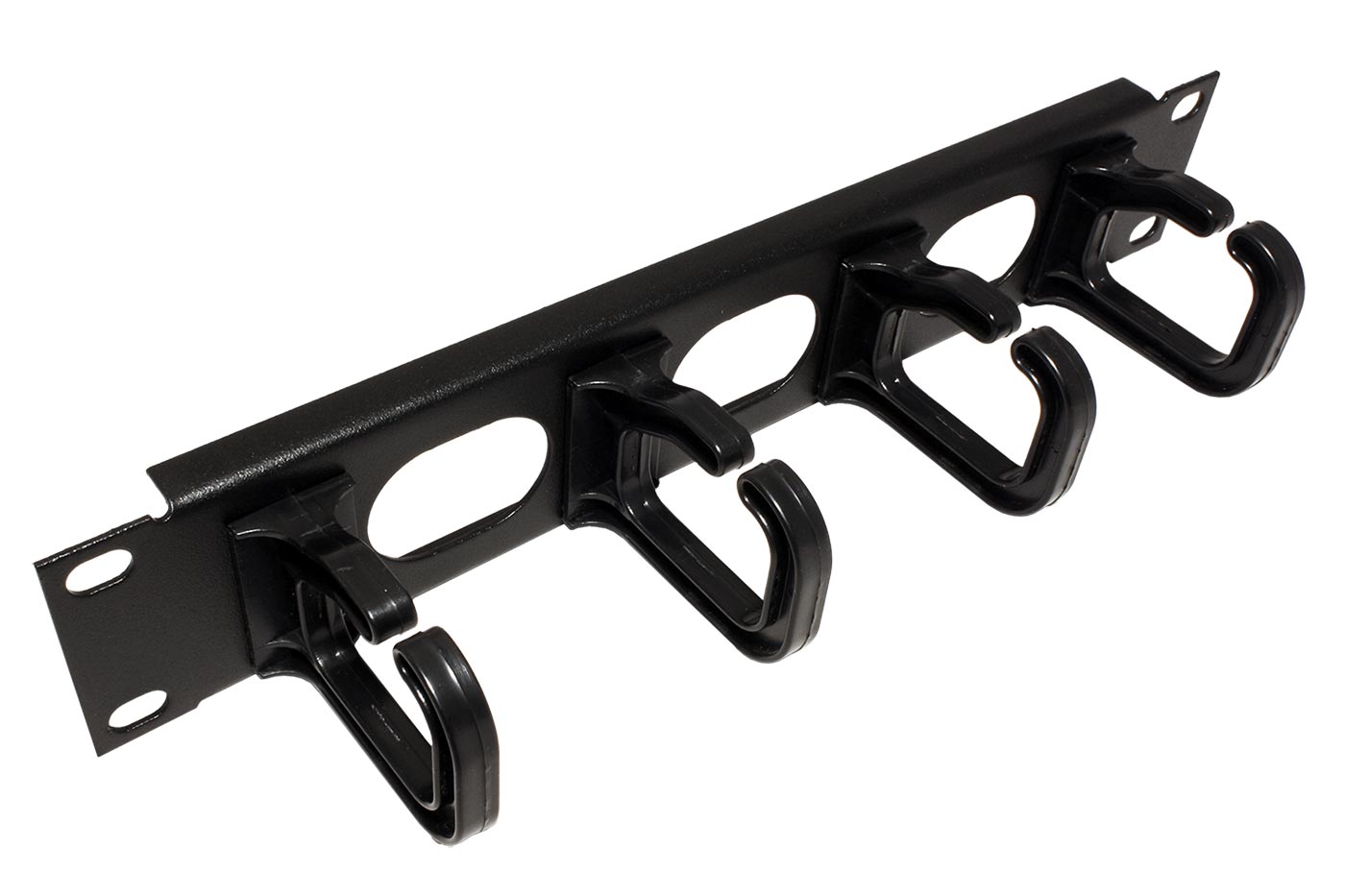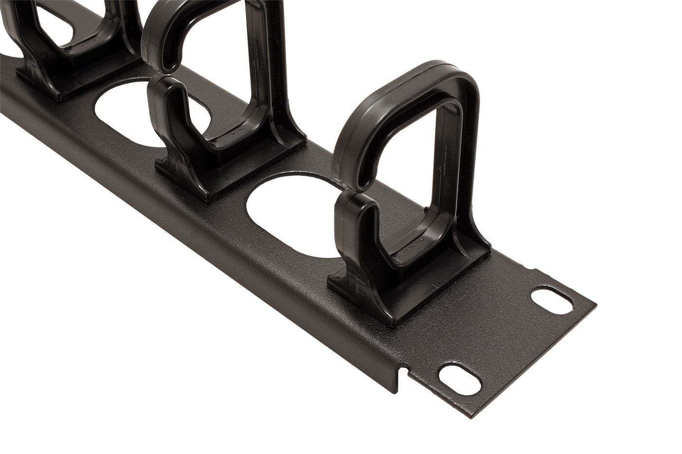 Vyvazovací panel 1U pro horizontální vedení kabelů v 10" rozvaděči, plastové třmeny 40x50, černý.