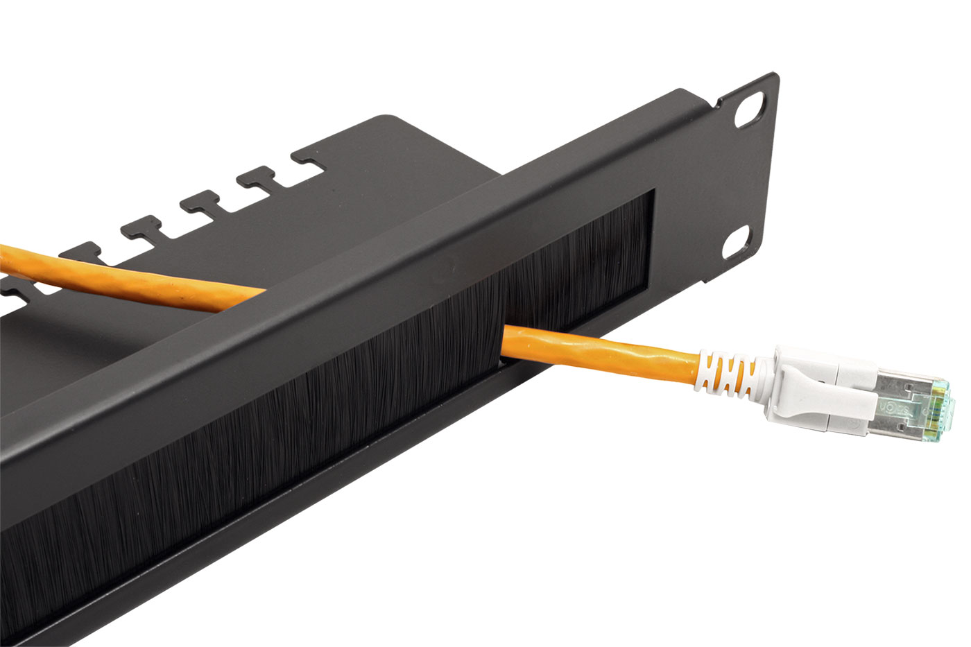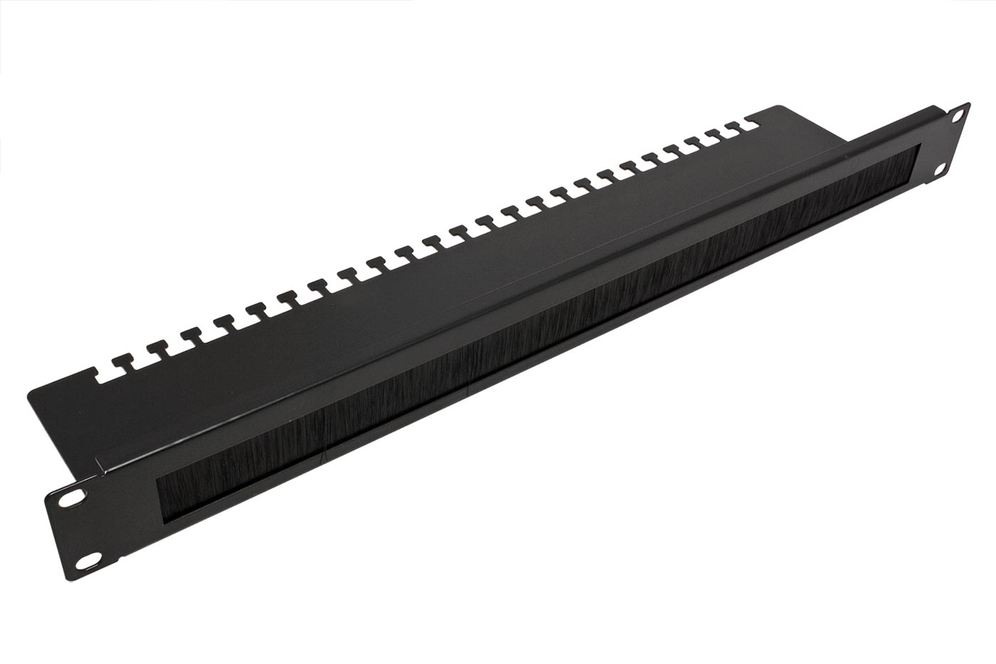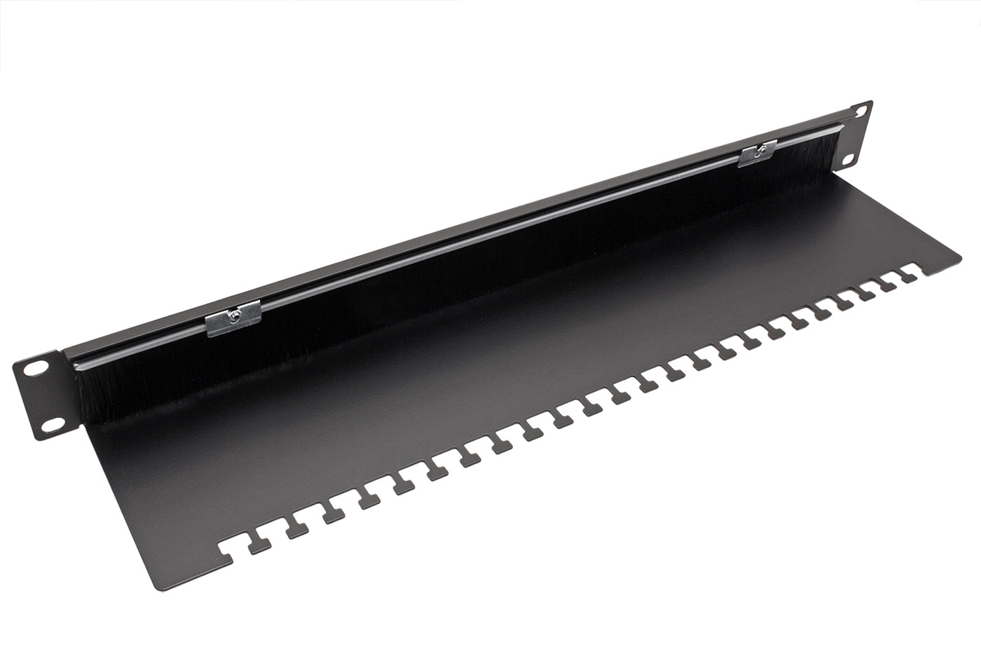 Průchozí záslepka 1U do 19" rozvaděče. S ochranným kartáčem a vyvazovacím rámem.