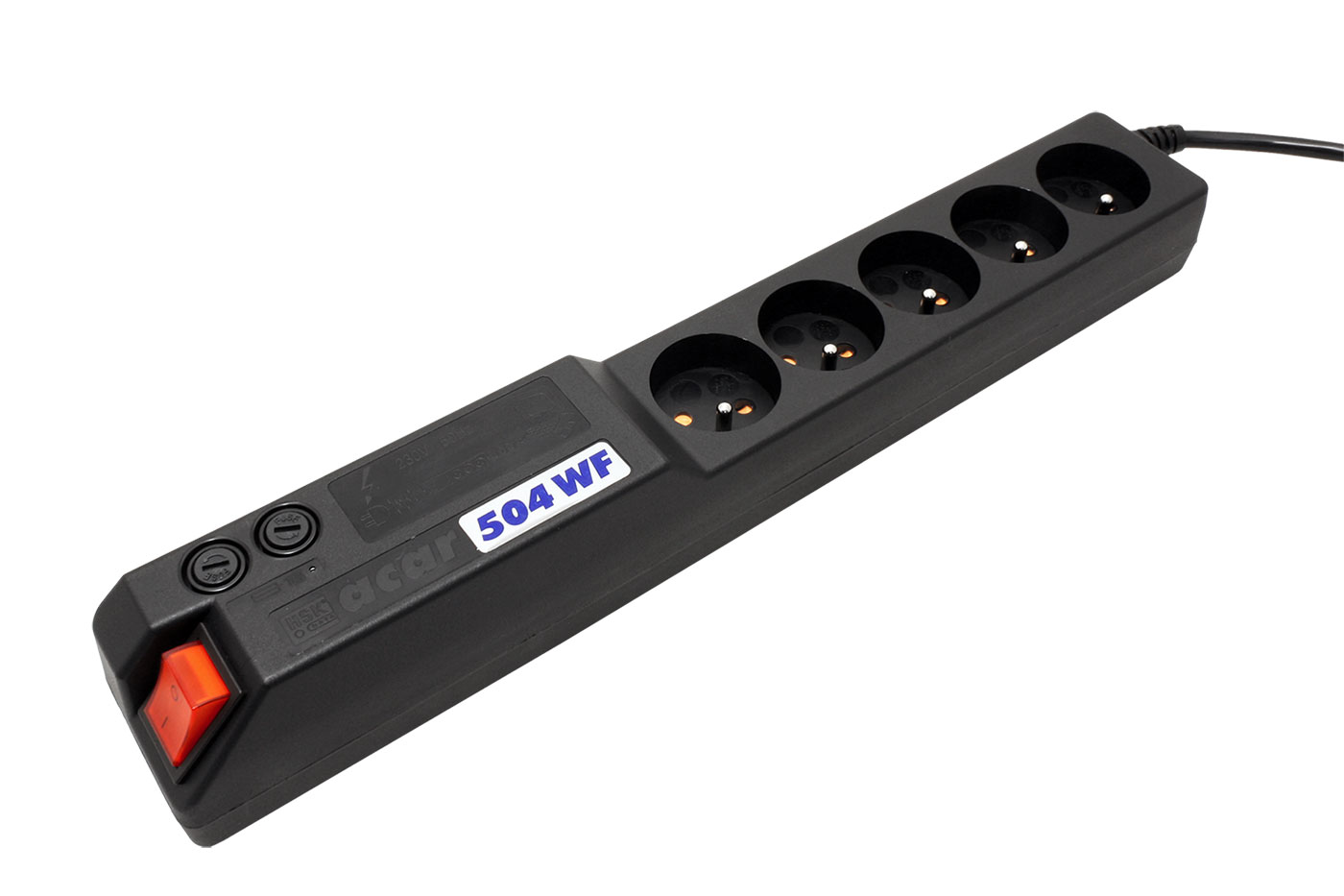 ACAR 19" napájecí panel 1,5U, 5x zásuvka CZ, přepěťová ochrana, filtr, vypínač, černý, 3m (504WF)