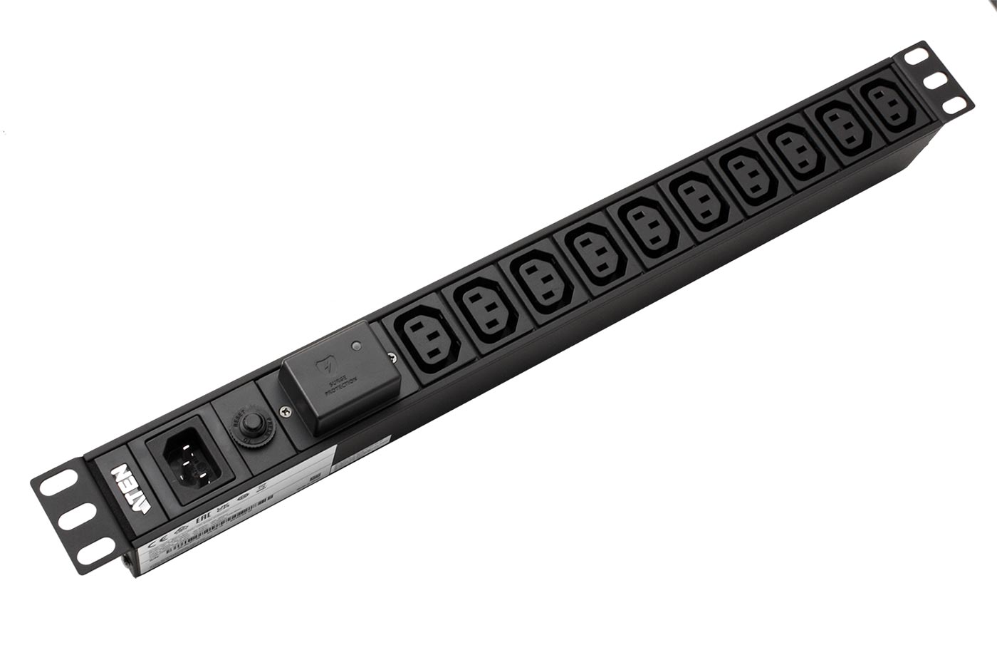 Aten 19" napájecí panel 1U, 10x C13, vstup C14, přepěťová ochrana, + kabel 3m (PE0110SG)