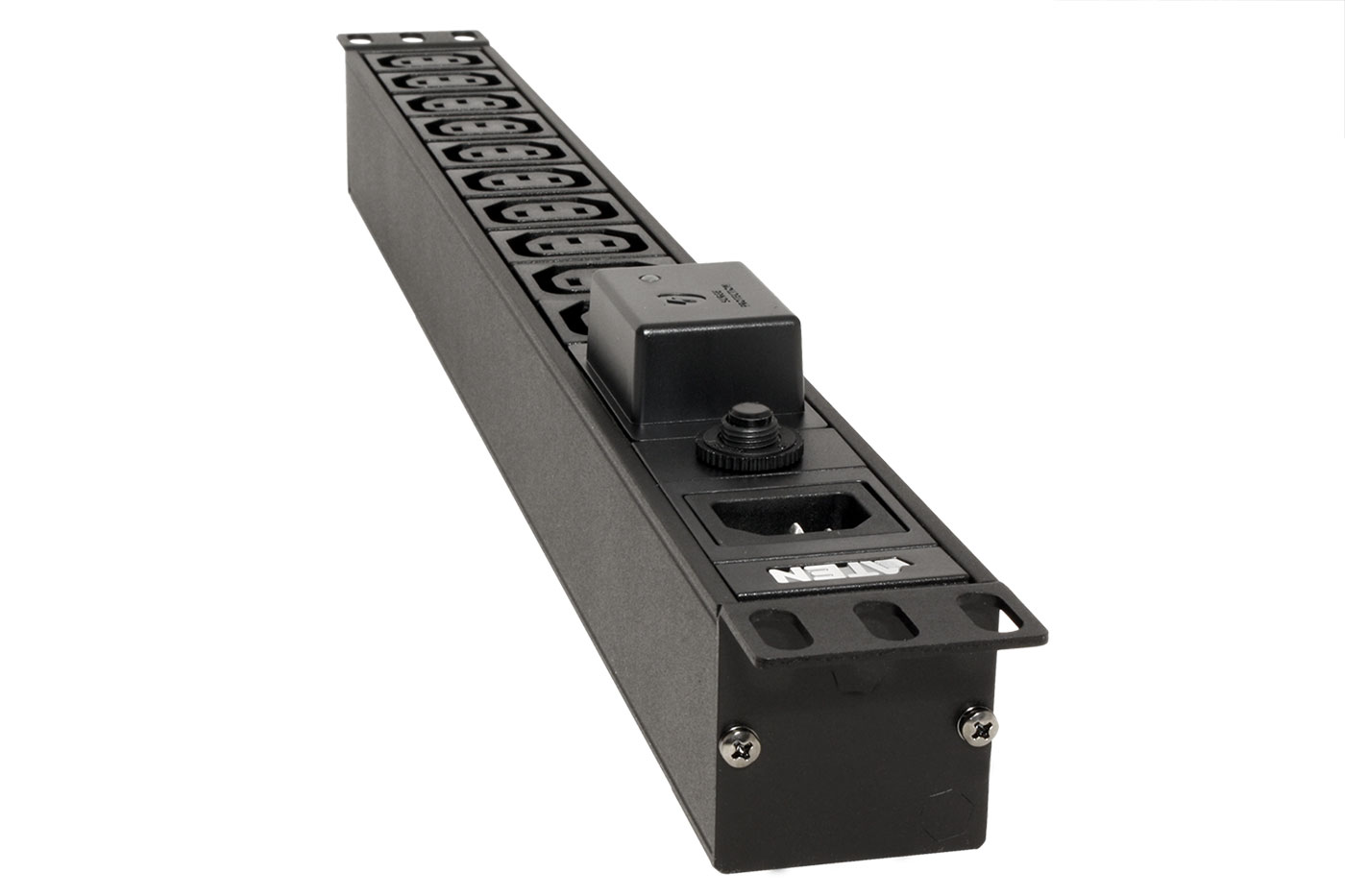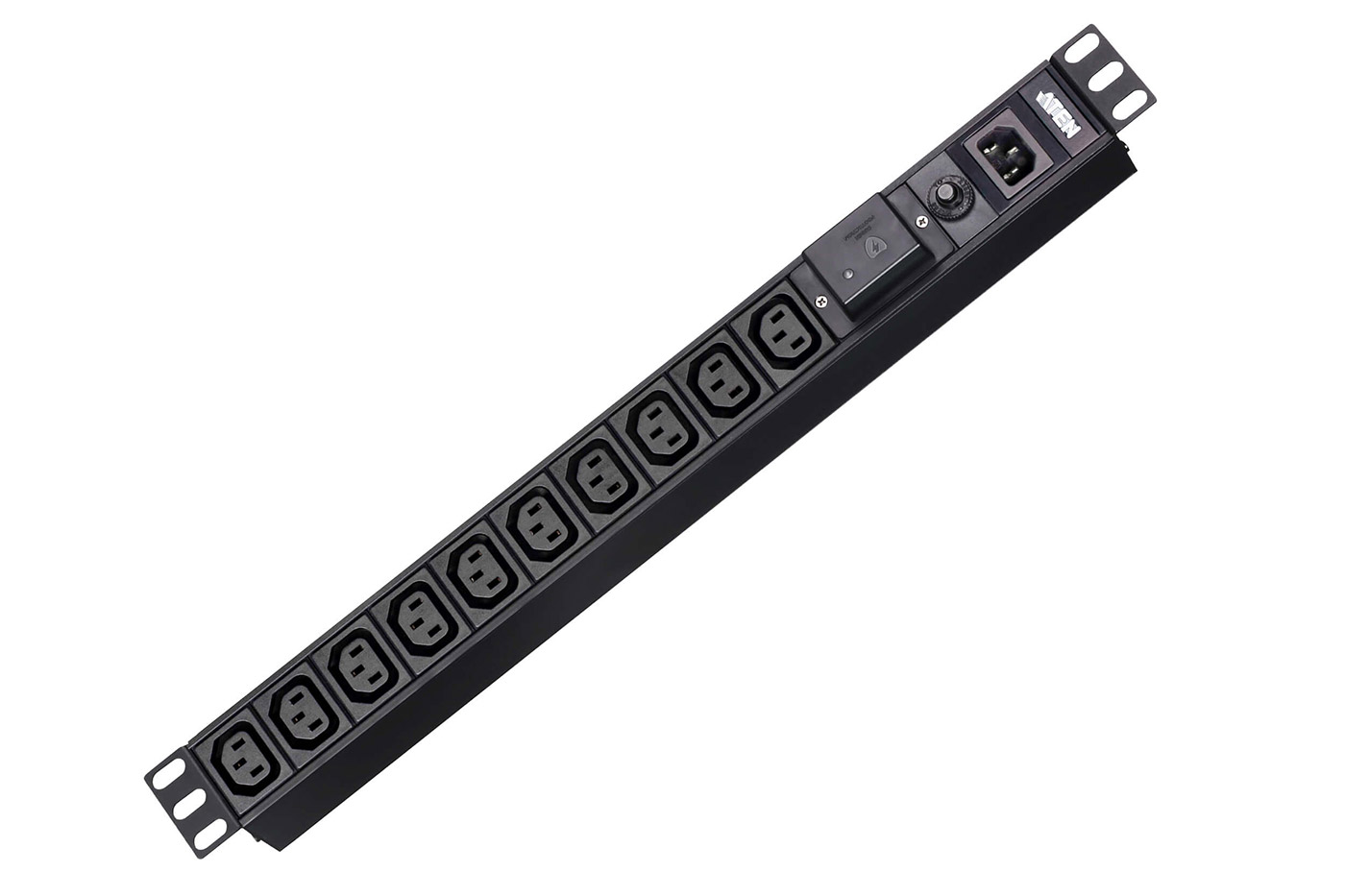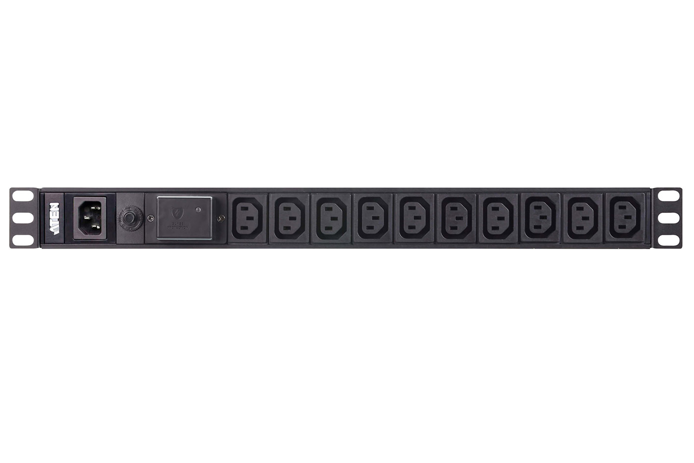 Desetinásobná zásuvka IEC320 C13 s přepěťovou ochranou, pro montáž do rozvaděče (výška 1U).;