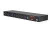 19" napájecí panel s 8 přístrojovými zásuvkami samostatně ovládanými přes IP. S měřením napětí, proudu, teploty a vlhkosti.;