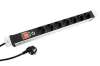 Value 19" napájecí panel 1U, 7x zásuvka DE, přepěťová ochrana, vypínač, černý, 3m