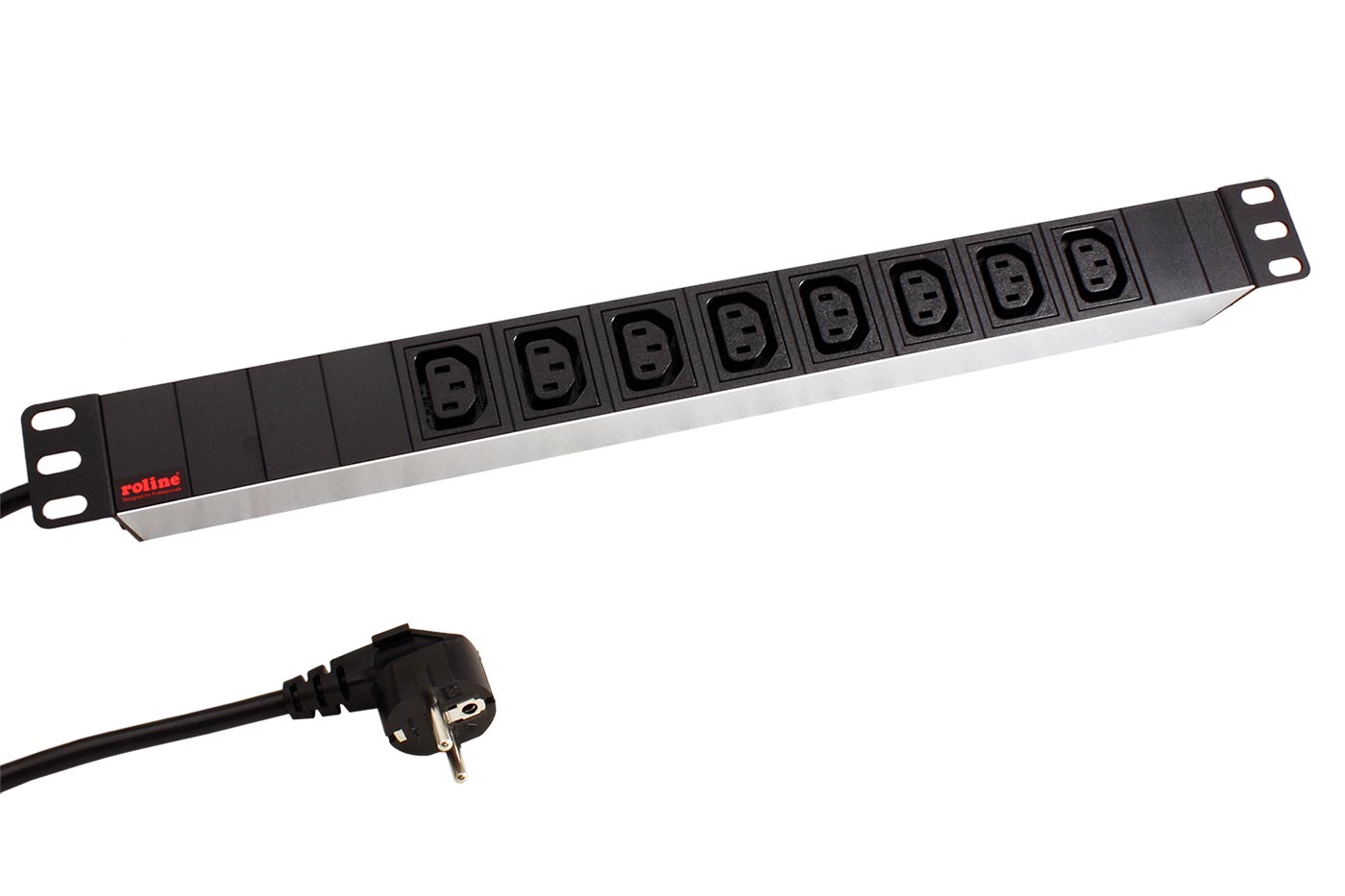 ROLINE 19" napájecí panel 1U, 8x zásuvka C13, bílý / černý, kabel, 1,8m