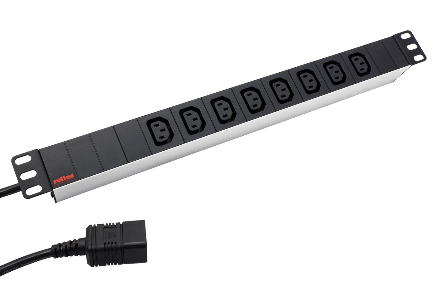 ROLINE 19" napájecí panel 1U, 8x zásuvka C13, vidlice C20, bílý / černý, kabel 2m