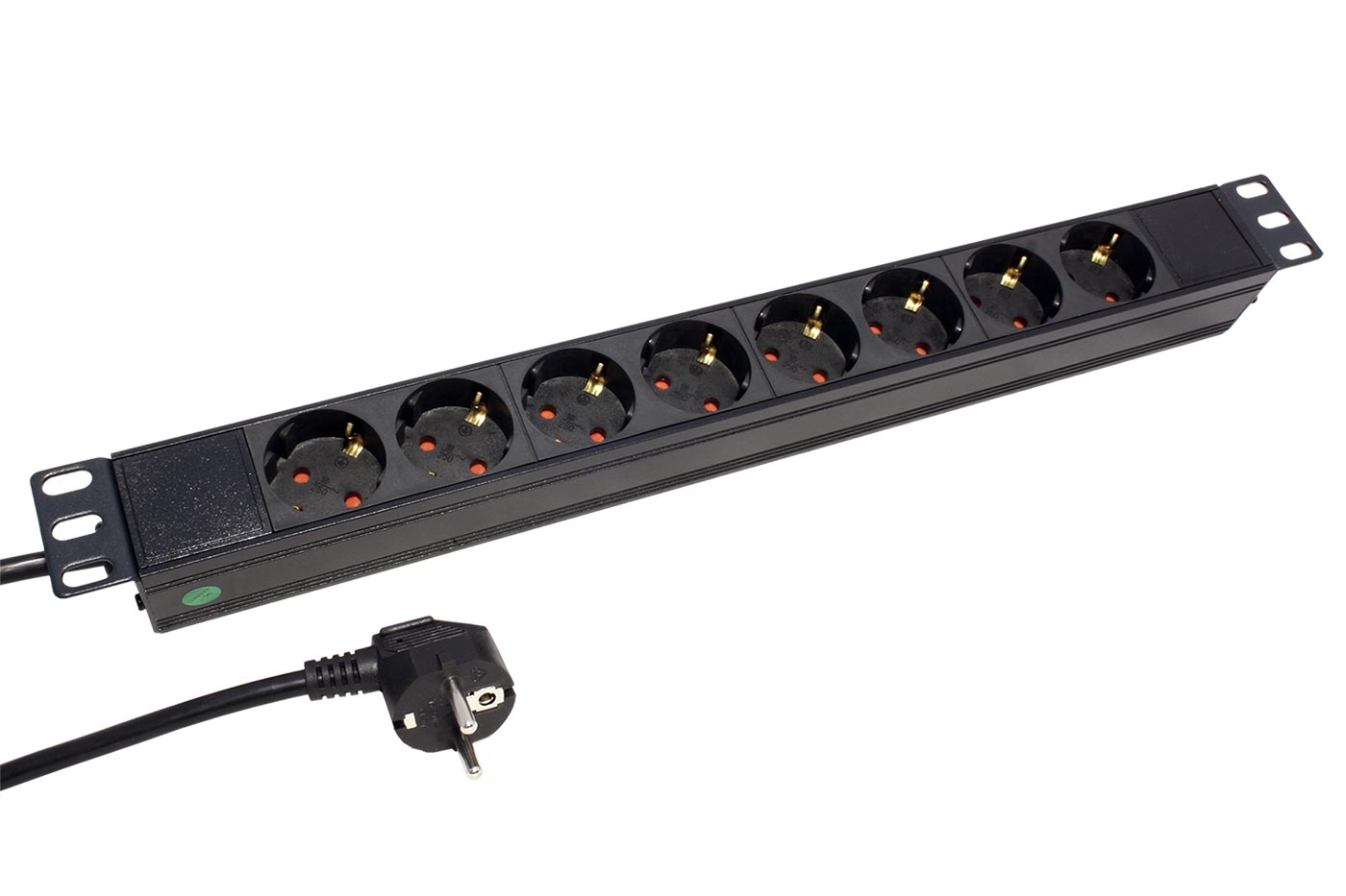 Osminásobná zásuvka (DE), pro montáž do rozvaděče (výška 1U).;