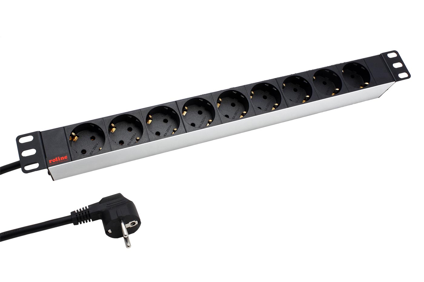 ROLINE 19" napájecí panel 1U, 9x zásuvka DE, bílý / černý, 1,8m