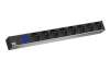 19" napájecí panel systému BlueNet BN0500 s 8 zásuvkami CEE 7/5 (CZ) a měřením základních elektrických veličin.;