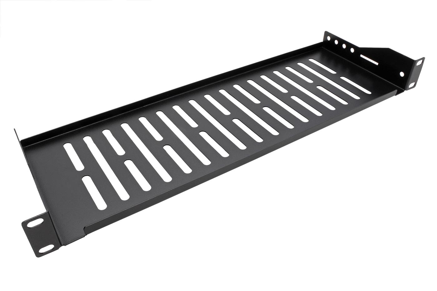 19" 1U pevná police hluboká 150mm s uchycením vpředu.;