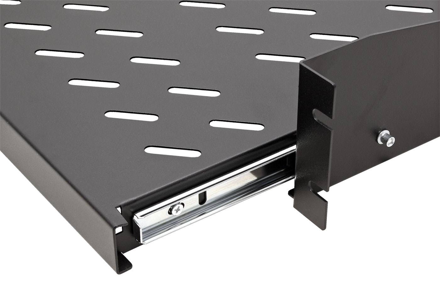 Obsah balení: police, 2x výsuvná ližina, plastové držadlo + 2x vrut, 4x sada šroub M6 + podložka;