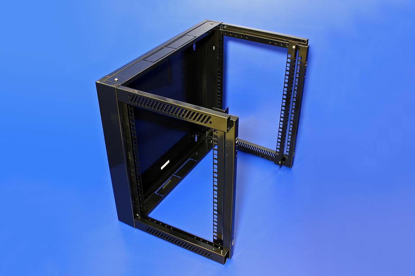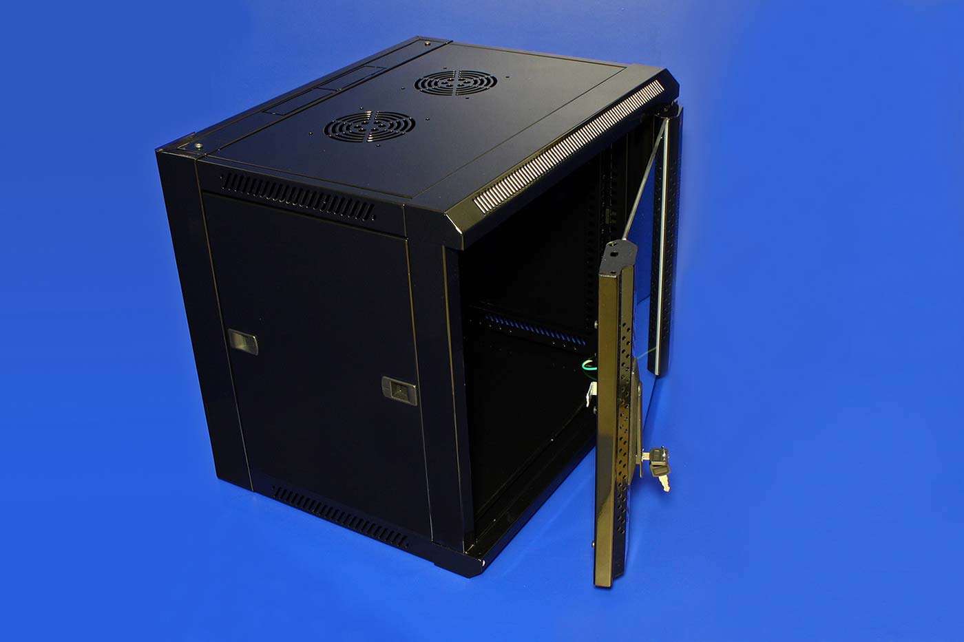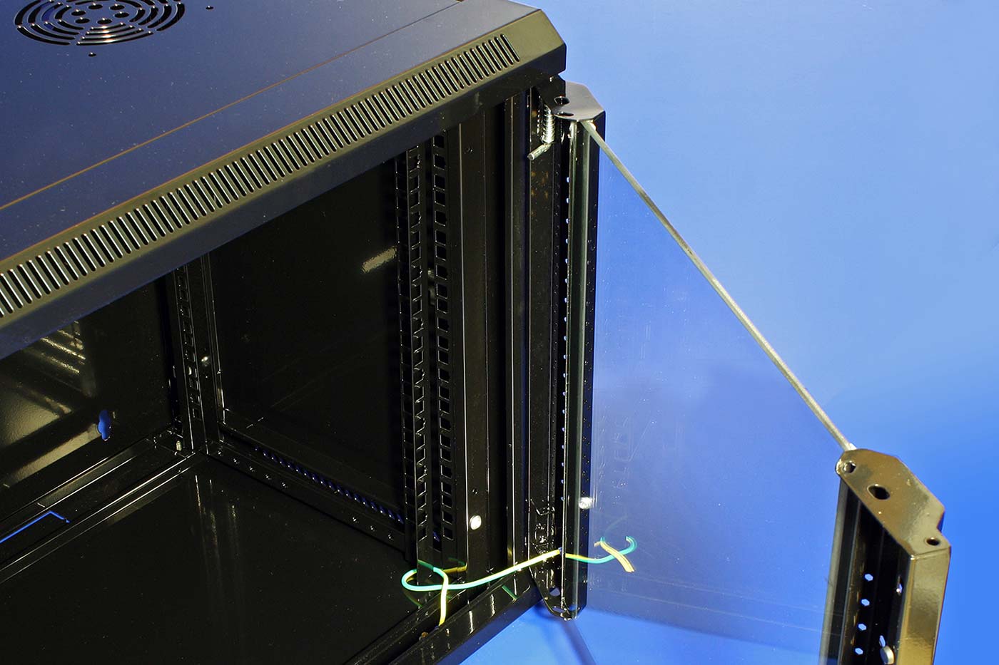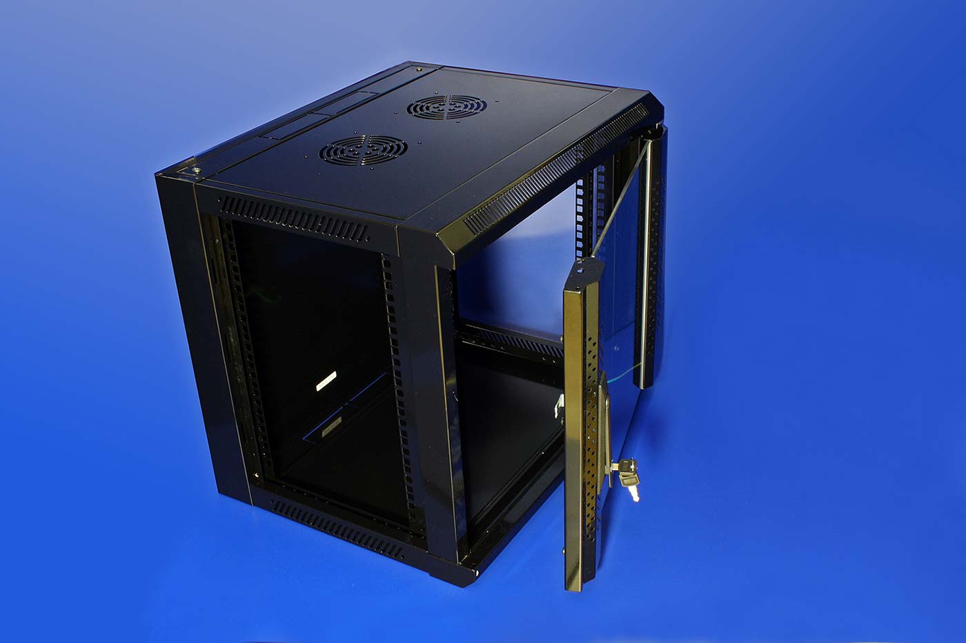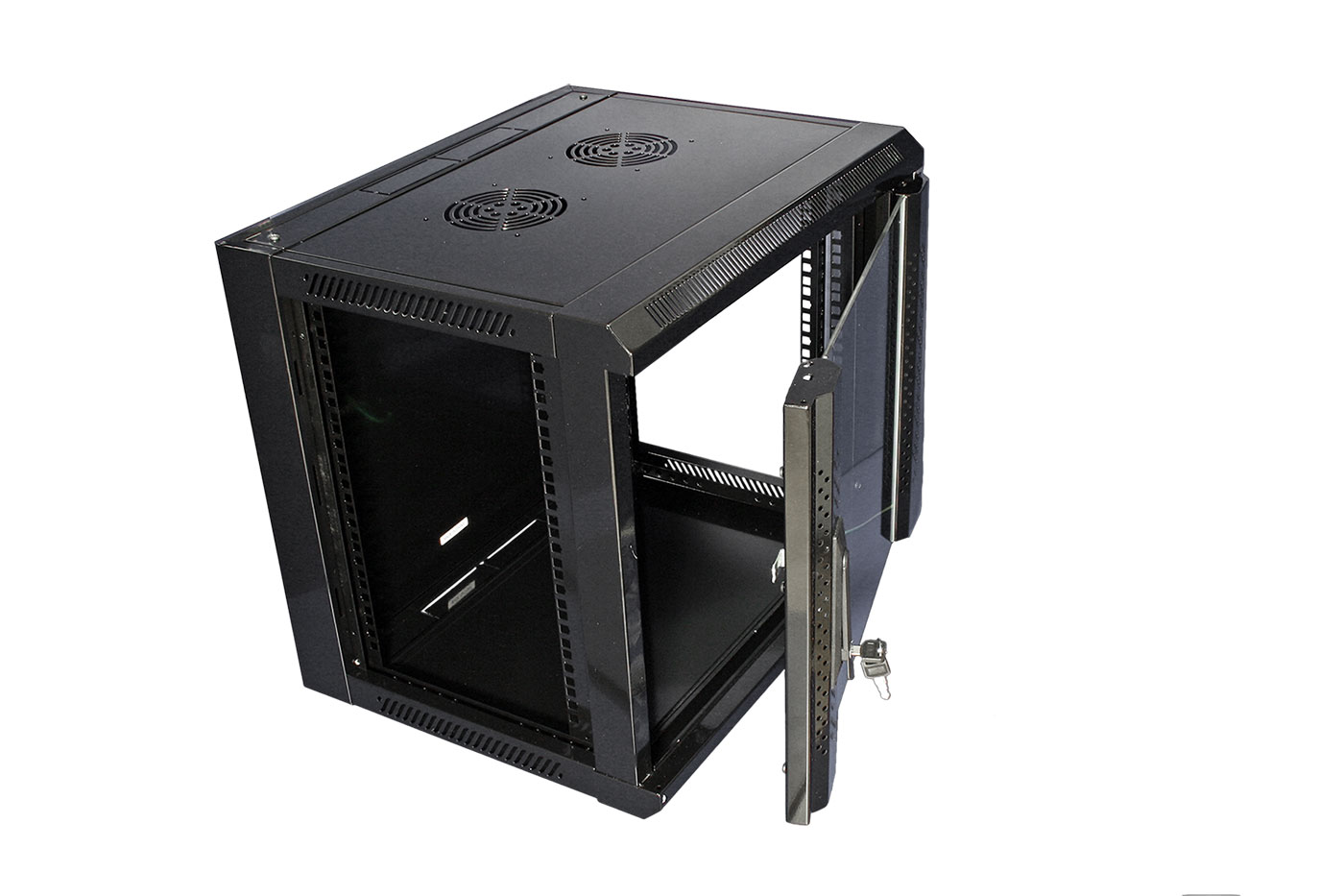 Obsah balení: - rozvaděč (zadní díl, 2x boční rámy, 2x bočnice, horní kryt, dolní kryt, přední rám, dveře se zámkem a tvrzeným sklem, 2x krycí plechy s otvory pro kabely)