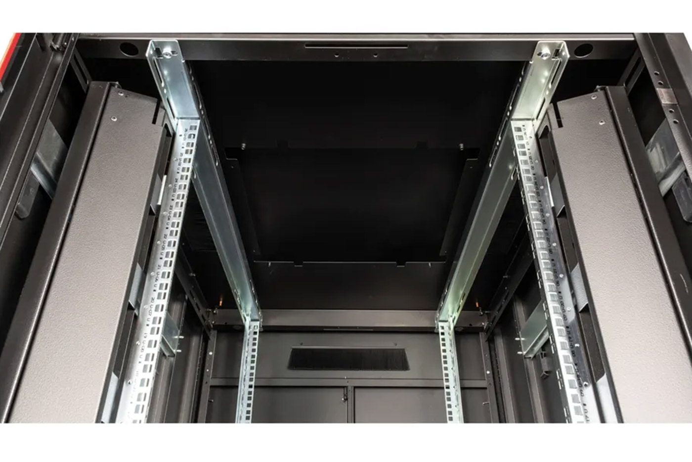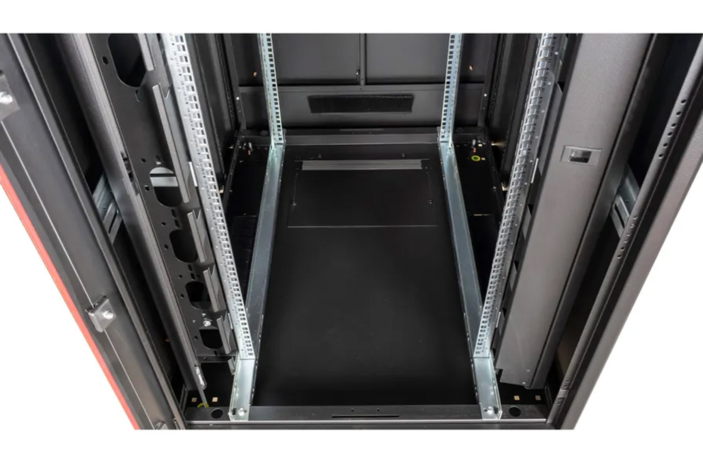- Vertikální kanály pro vedení kabelů v přední části
