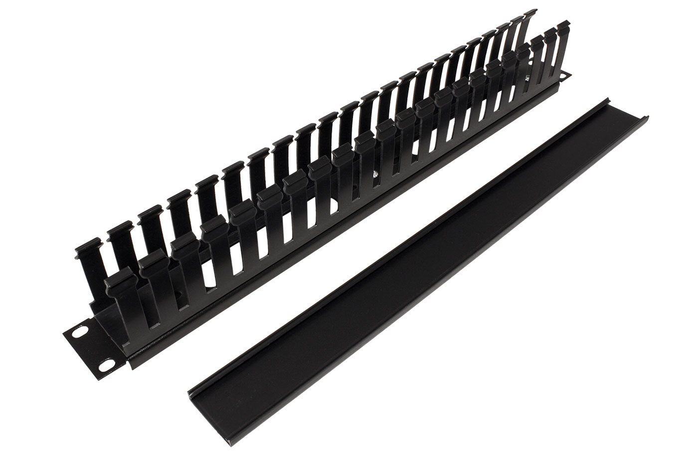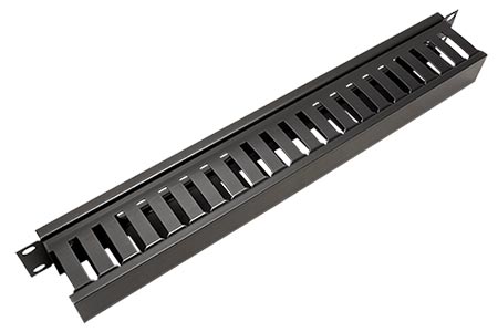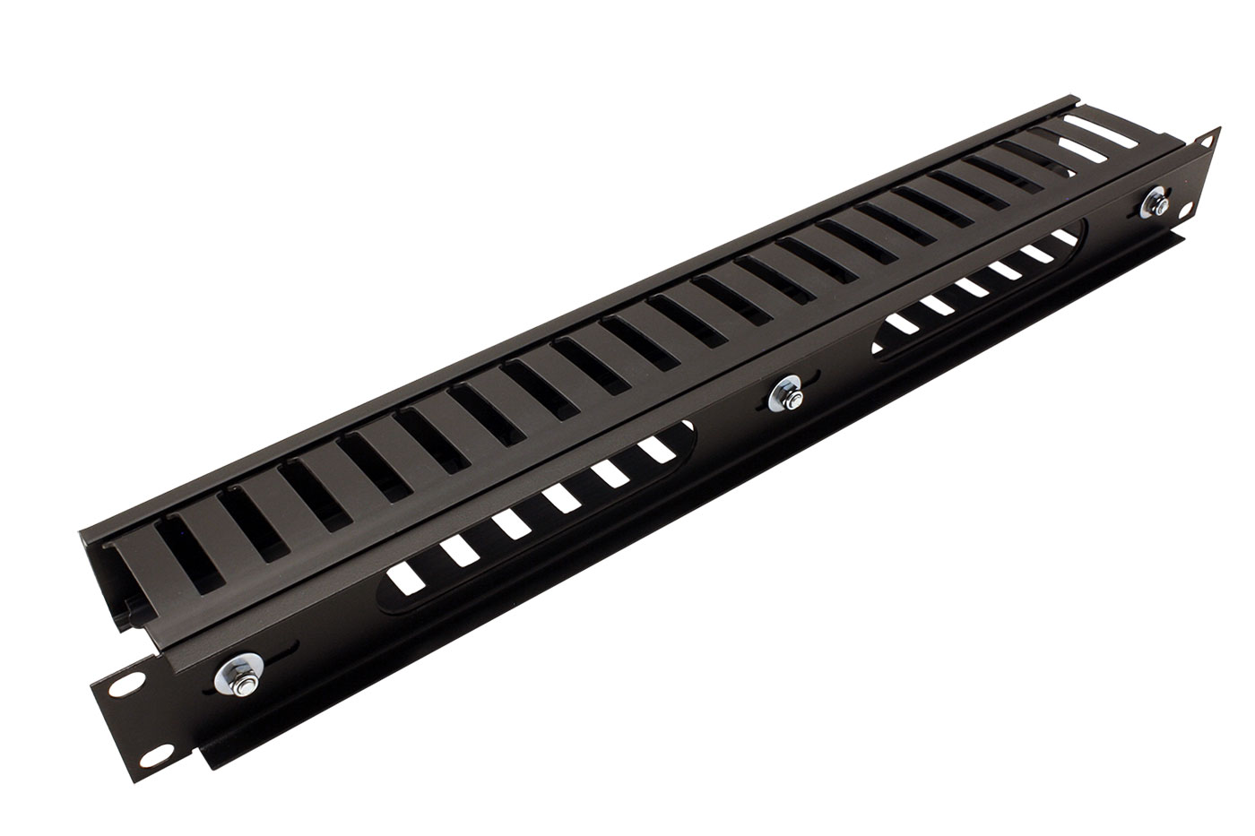 Pro horizontální vedení kabelů v 19" rozvaděči s možností zavedení kabelů do rozvaděče otvory v základně panelu.