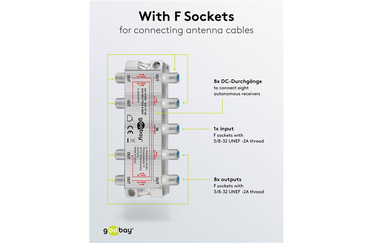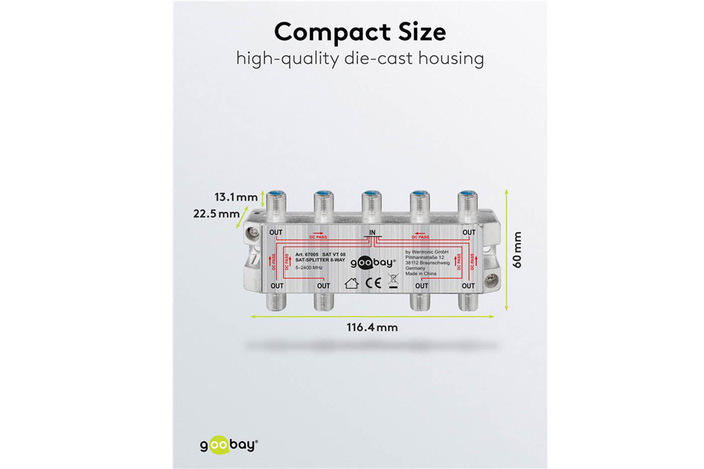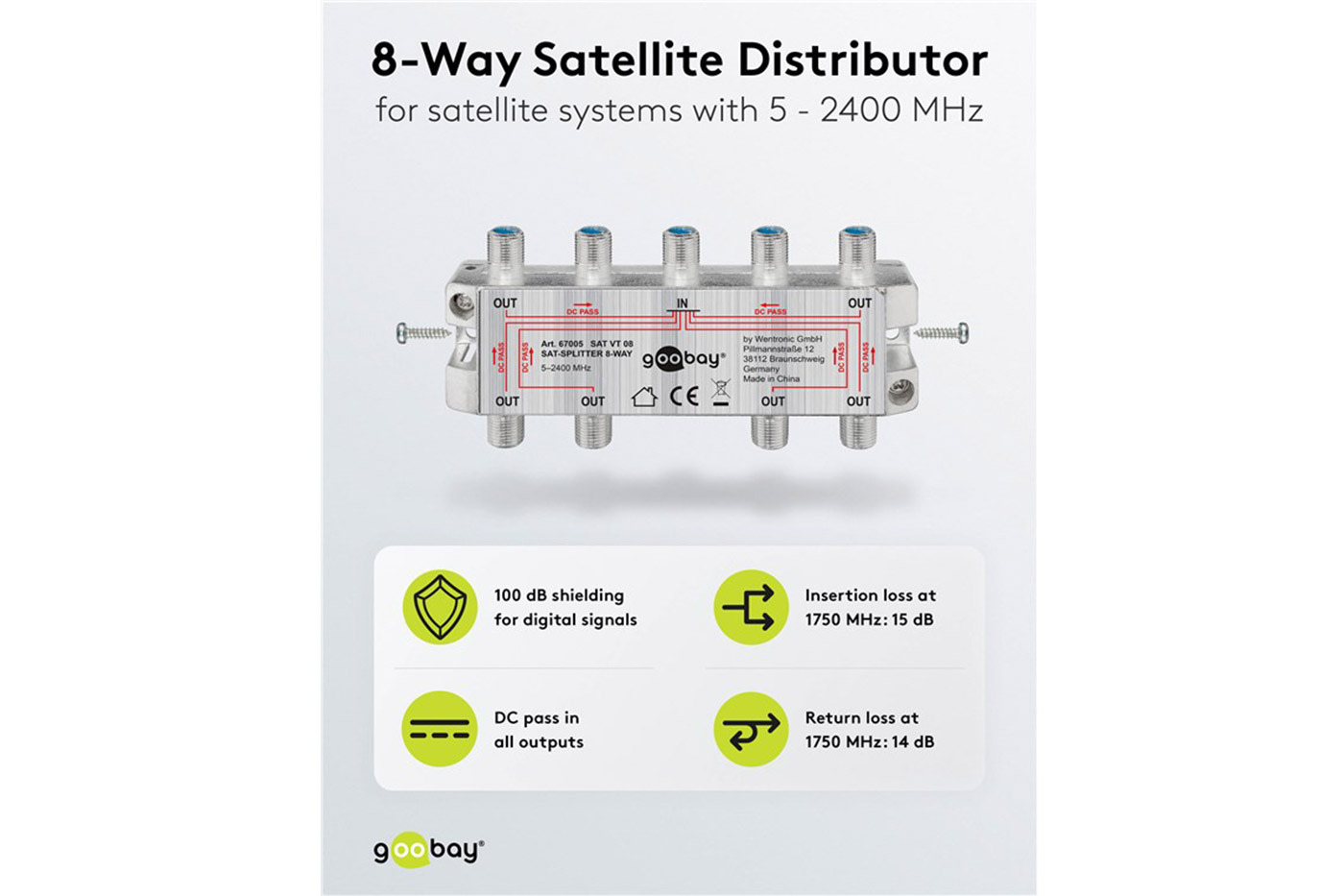 goobay Anténní rozbočovač 1:8, 9x F(F), SAT/TV, kovový, 5 MHz - 2450 MHz