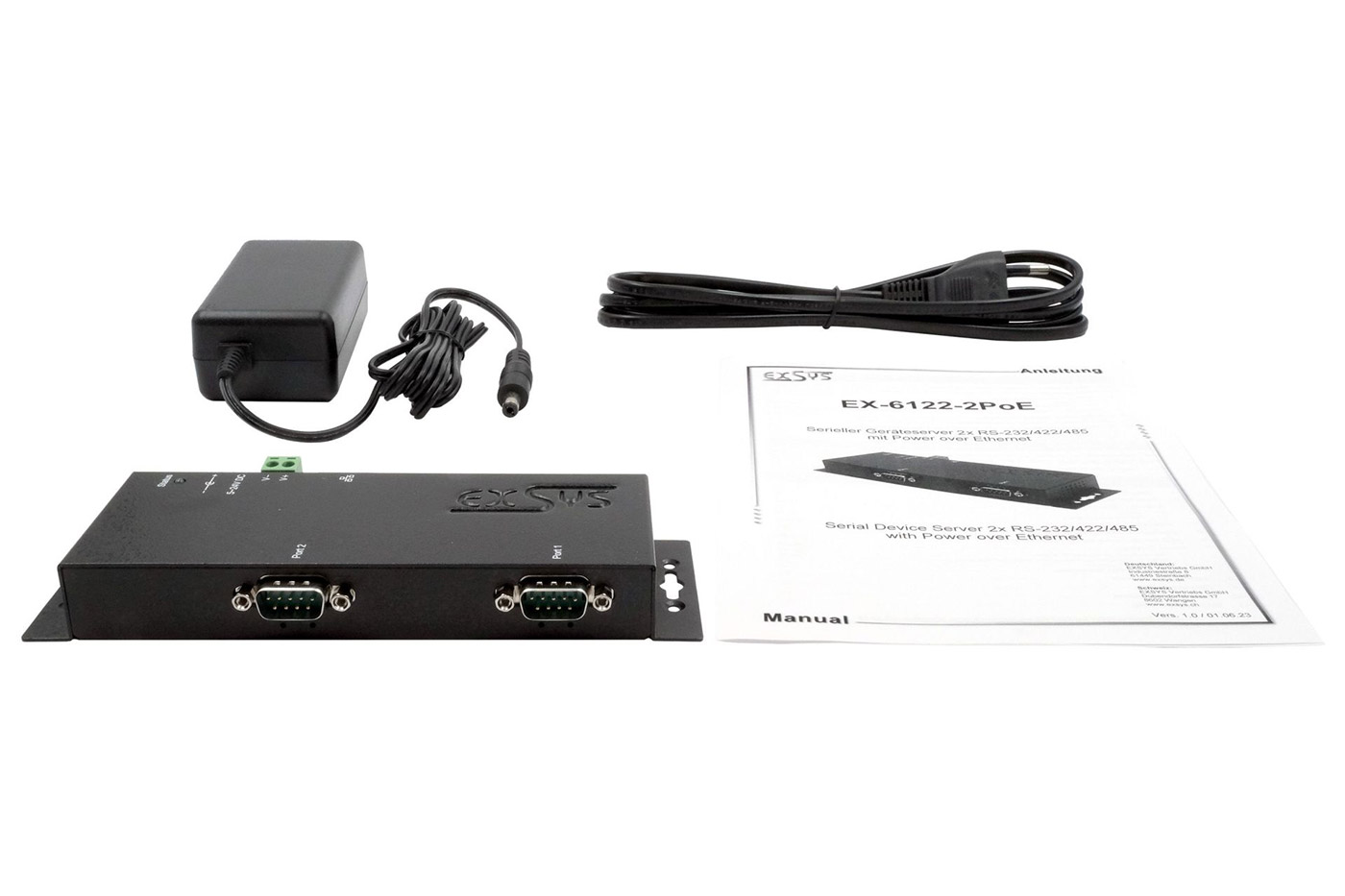 ExSys Adaptér 2x RS232 / RS422 / RS485 (MD9) přes IP, PoE (EX-6122-2PoE)