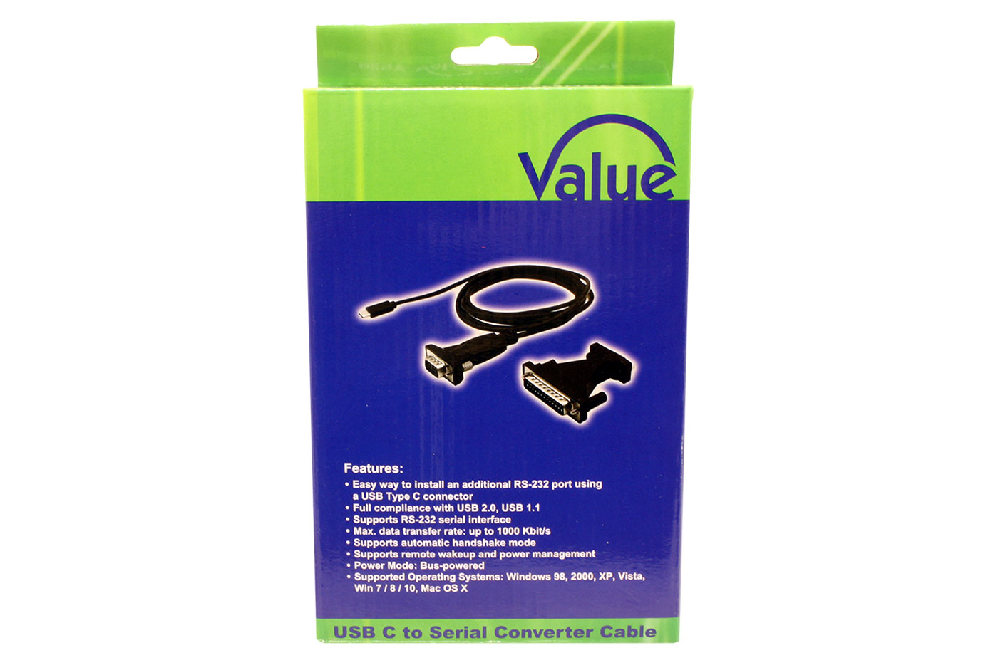 Value Adaptér USB C(M) -> 1x RS232 (MD9), + redukce na MD25, 1,8m