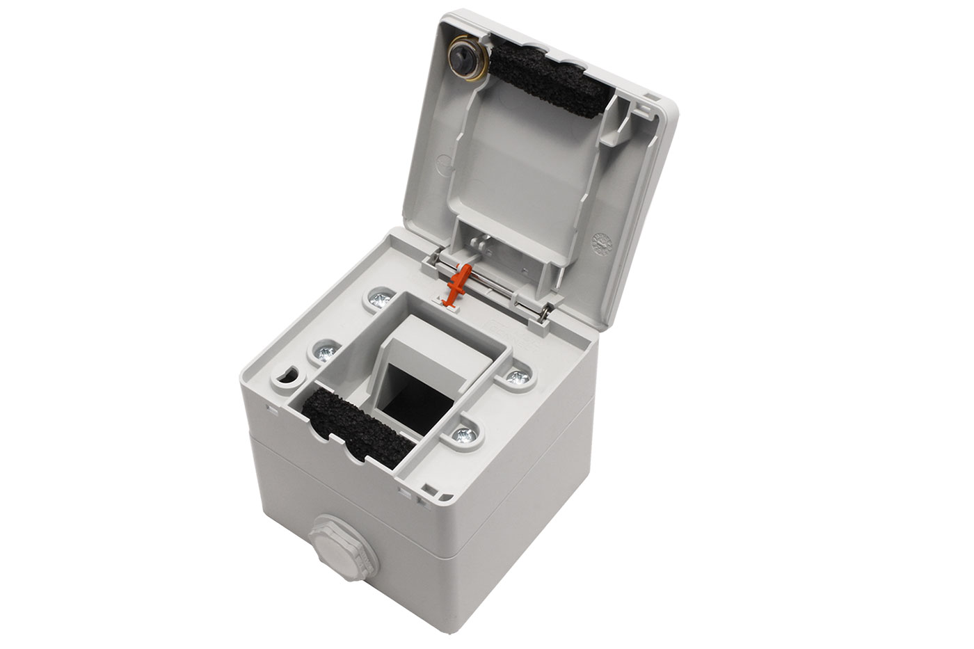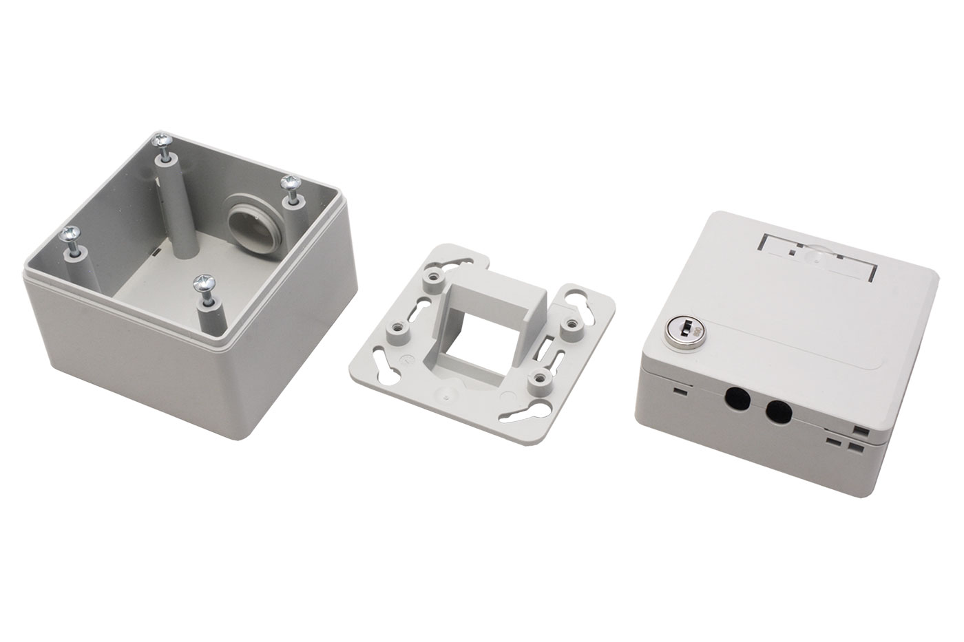 Robustní uzamykatelná krabice s krytím IP44 pro osazení až dvou Keystone modulů.