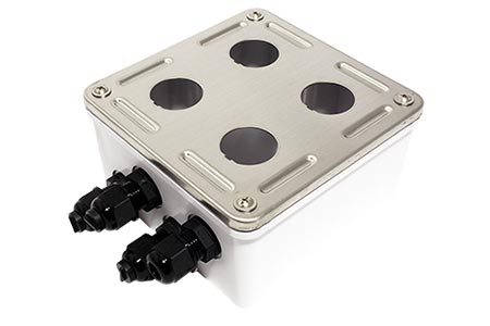 Průmyslový vodotěsný box pro zakončení strukturované kabeláže.;