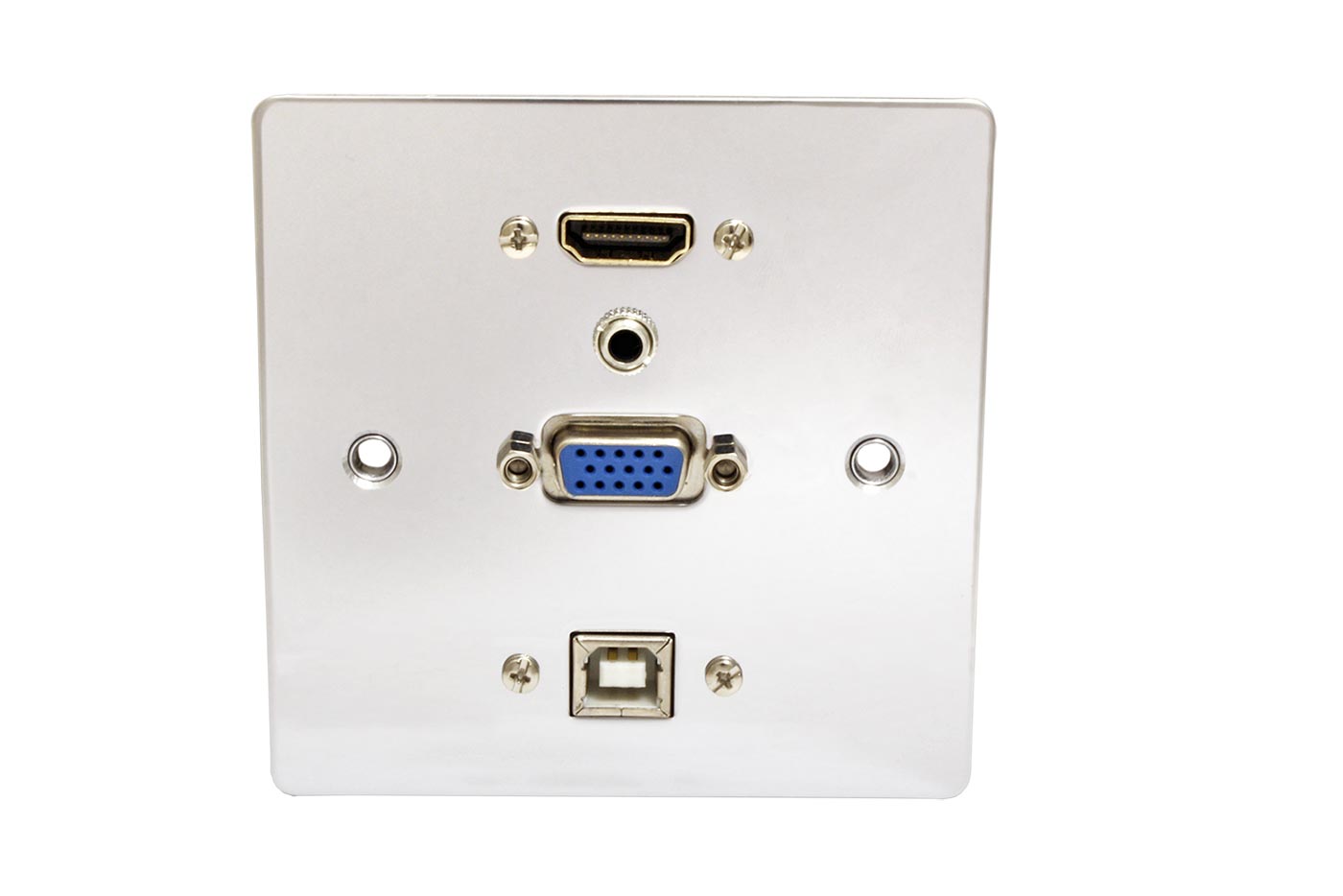 Čelo zásuvky HDMI + VGA + USB + audio Jack 3.5mm, kov, stříbrné
