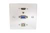 Čelo zásuvky osazené výstupem HDMI, VGA, USB a audio. Montáž do montážní krabice.