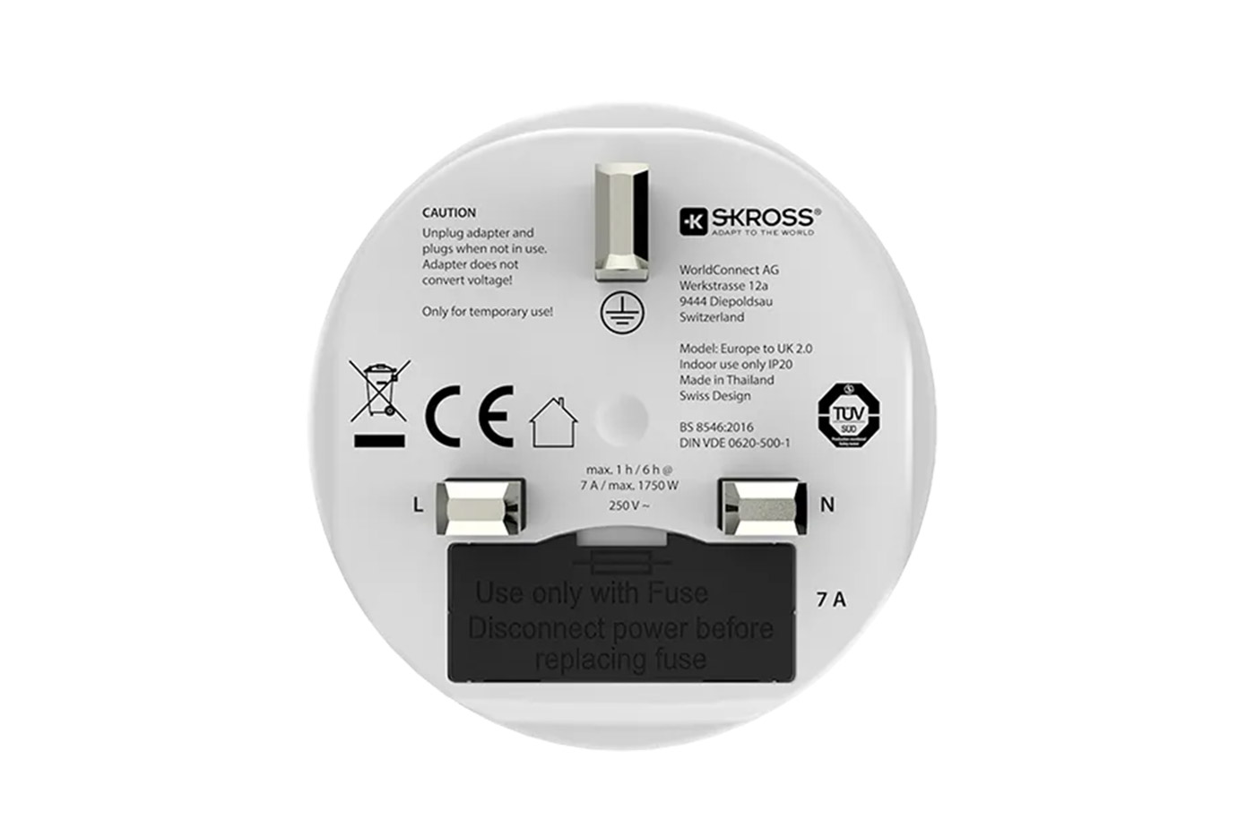 Umožňuje připojit zařízení s německou (nebo univerzální CZ/DE) třípólovou vidlicí (typ F nebo E/F) do zásuvky používané v Anglii.