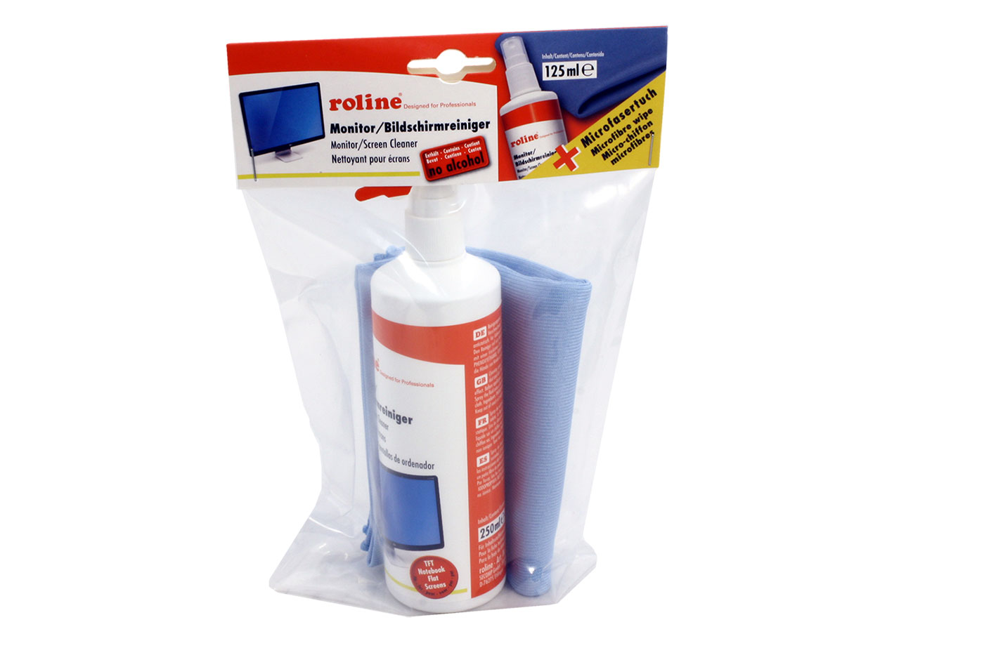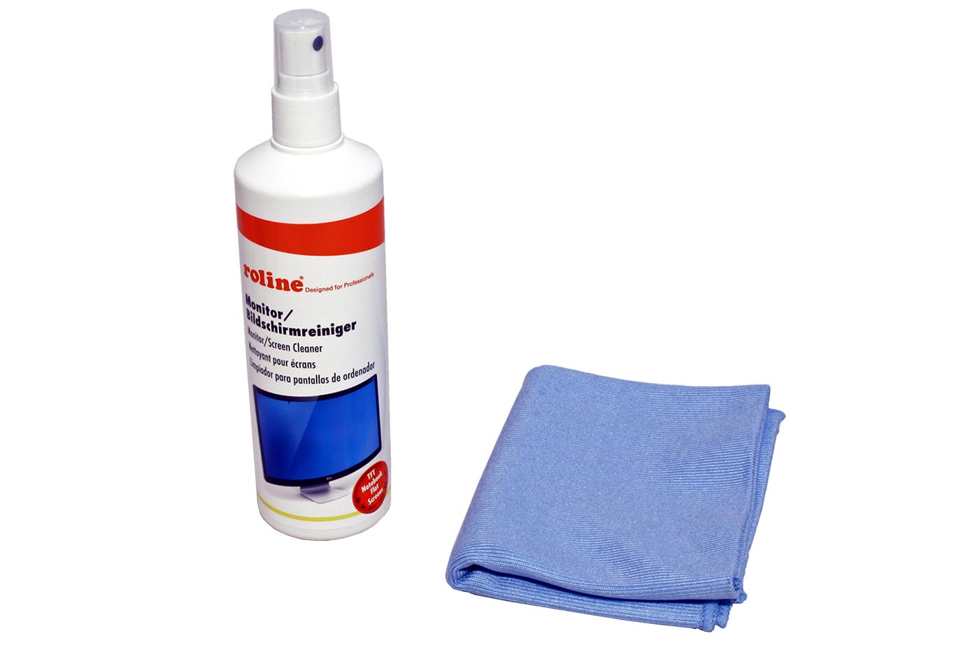 ROLINE Čistící sada na LCD obrazovky, 250ml roztok (rozprašovač) + utěrka z mikrovlákna 40x40cm