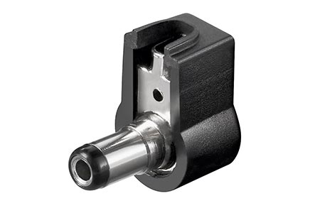 Souosý napájecí konektor pro malá napětí. Lomený 90°.;