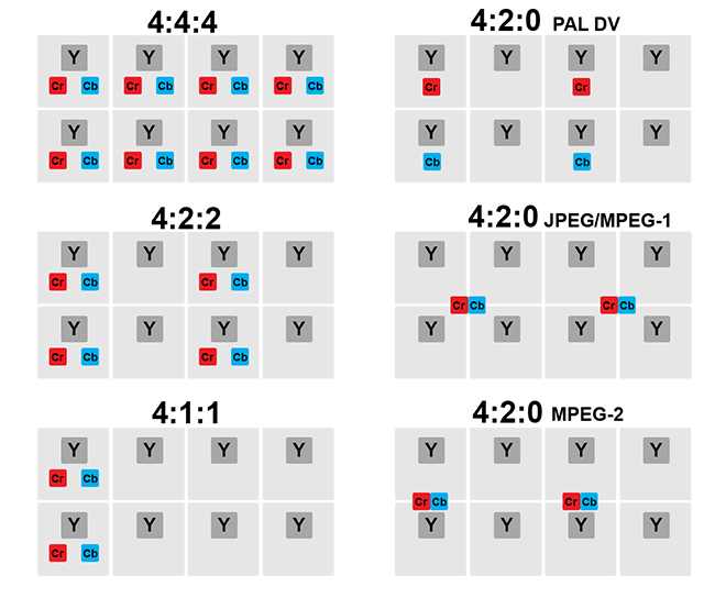 Systém označení vzorkování video signálu. První číslo označuje vzorkovací frekvenci jasové složky (Y). Druhé číslo označuje vzorkovací frekvenci rozdílových složek R-Y (Cr) a B-Y (Cb) horizontálně. Třetí číslo je buď stejné jako druhé (pak znamená, že vertikální vzorkovací frekvence rozdílových složek je stejná jako horizonální), nebo je rovna 0 (pak znamená, že vertikální vzorkování je poloviční oproti horizontální). Hodnota 4 znamená plnou vzorkovací frekvenci, 2 poloviční, 1 čtvrtinovou.Vzorkování s označením 4:2:0 se používá v různých sytémech (PAL, JPEG, MPEG...). Konkrétní použití se liší (existují minimálně 3 různé implementace), ale v principu vzorkování 4:2:0 znamená, že každá skupina 4 pixelů v uspořádání 2x2 obsahue 1 vzorek obou rozdílových složek. Jednotlivé systémy se pak liší umístěním rozdílových složek - PAL obsahuje střídavě v celém řádku vždy pouze jednu složku (Cr nebo Cb). JPEG a MPEG mají posunuto vzorkování mezi řádky.