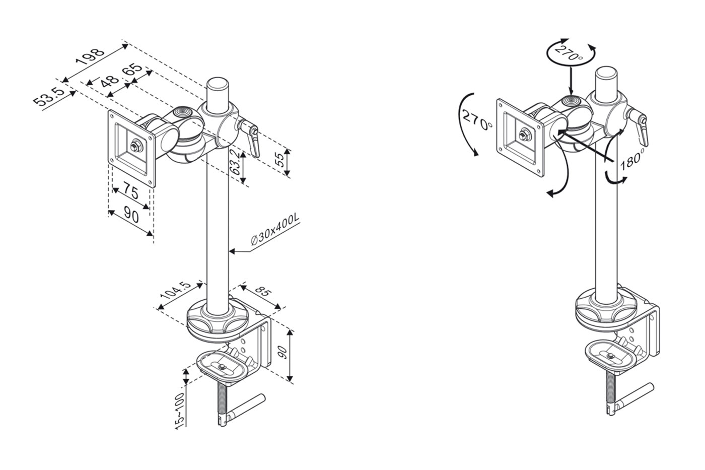 Nastavitelné rameno pro uchycení LCD displeje. Uchycení na stůl.;