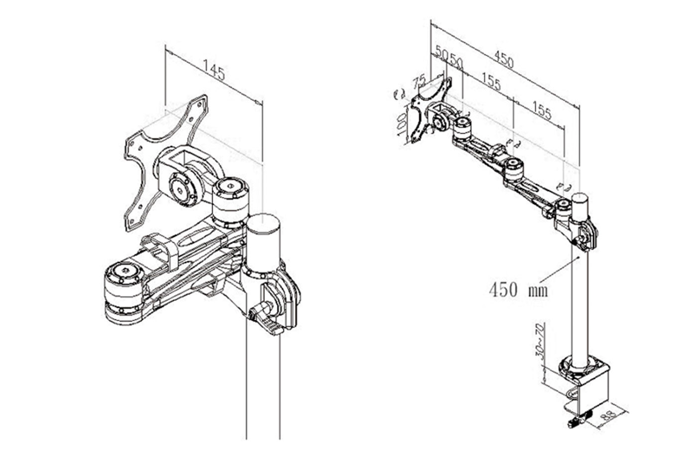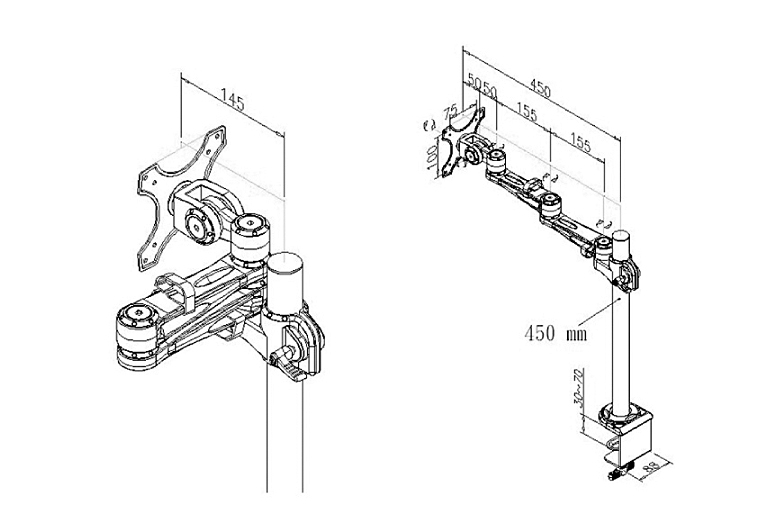 Držák LCD displeje, rameno 45cm, 4 klouby. Montáž na stůl.;