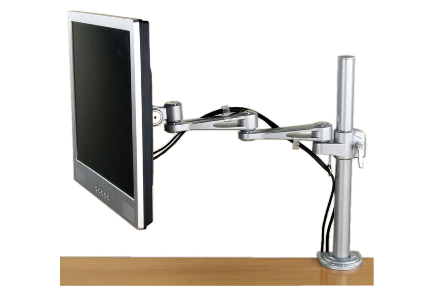 Držák LCD displeje, rameno 45cm, 4 klouby. Montáž na stůl.