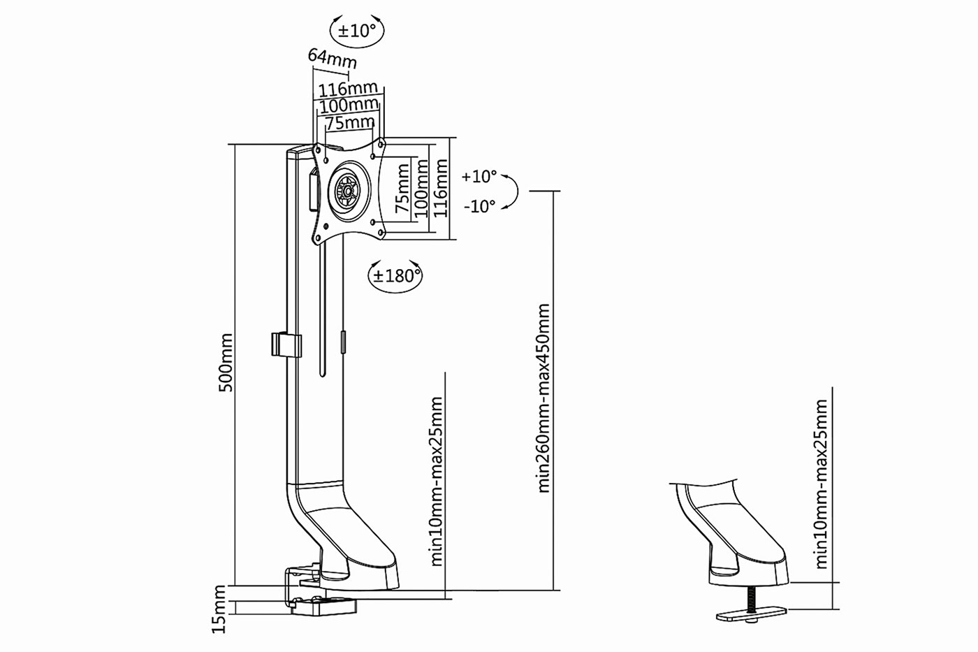 Použití: Pro montáž LCD monitoru na stůl. Vhodný pro nastavitelná pracovní místa / nastavitelné podstavce.;