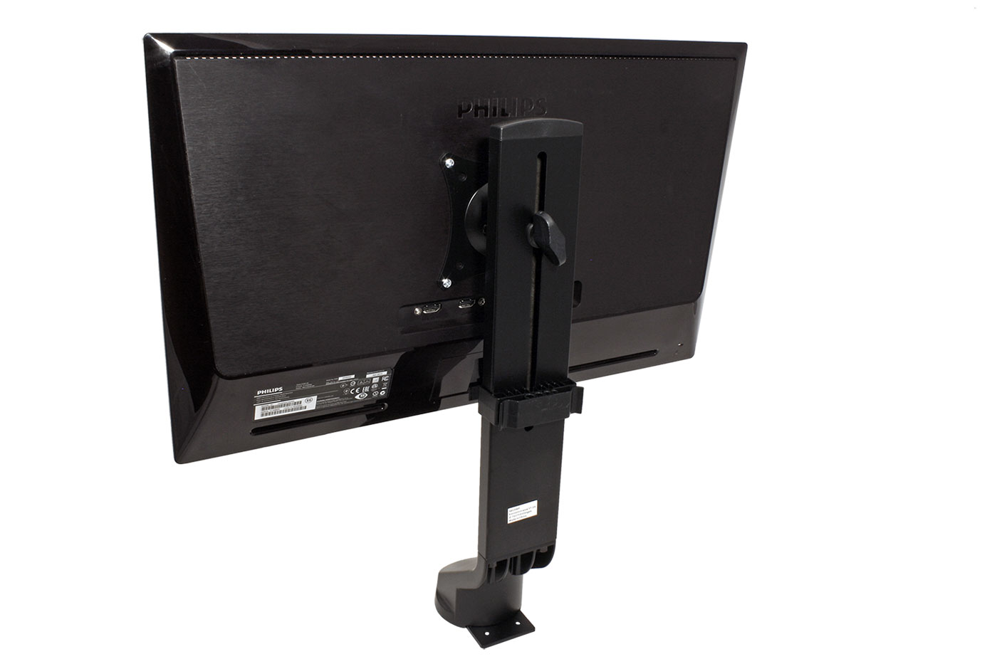 Jednoduchý držák LCD monitoru s nastavitelnou výškou. Montáž na stůl.;