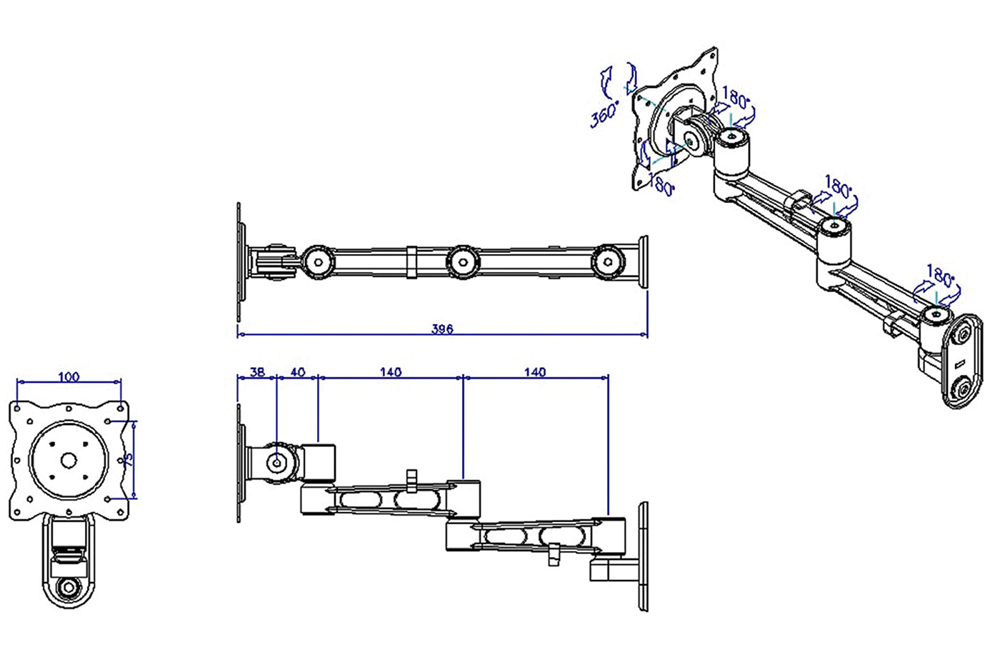 Vhodný pro montáž plochého displeje na svislou plochu. Jeho 4 klouby a otočná základna dipleje umožňuje dokonalé nastavení displeje v prostoru. Základna ramene se montuje na stěnu. Vhodný pro montáž většiny displejů s VESA 75x75 nebo 100x100.