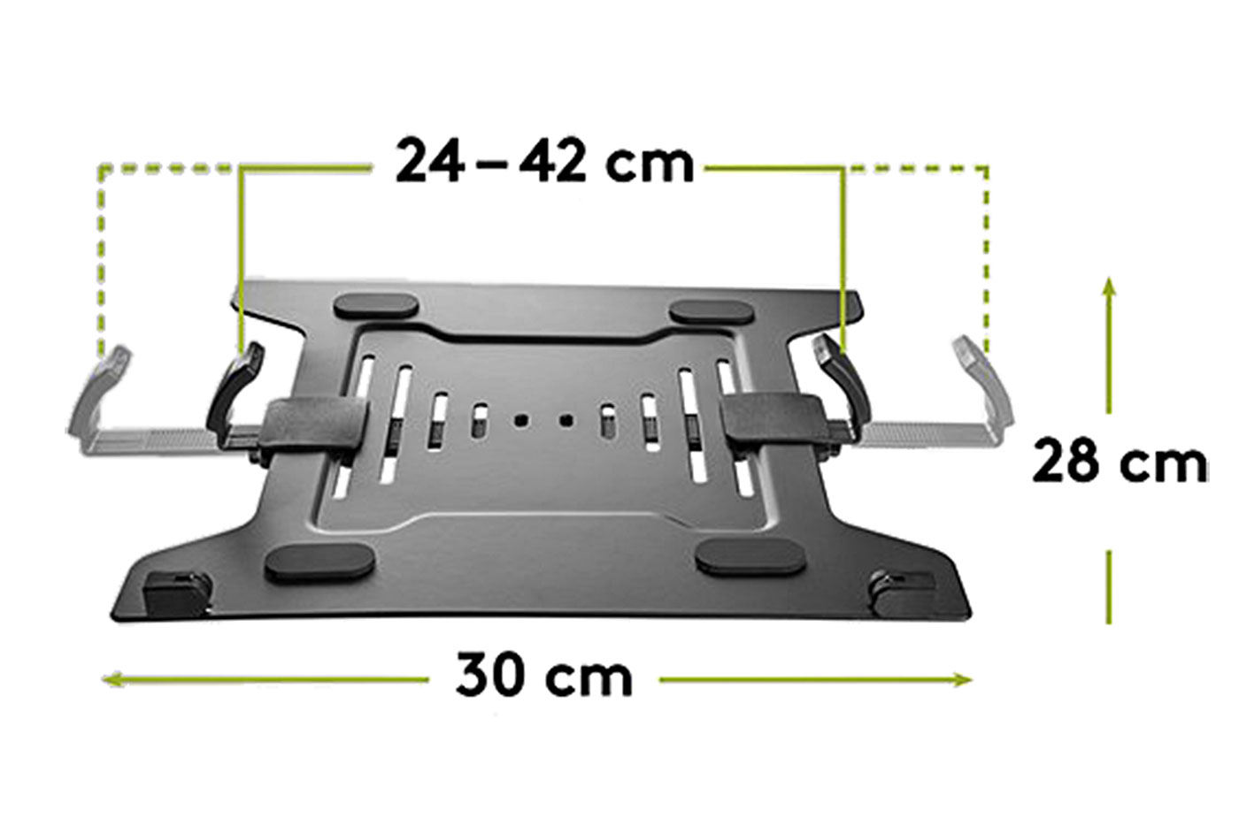 šířka prostoru pro notebook (s posuvnými bočnicemi): 240 - 420mm;