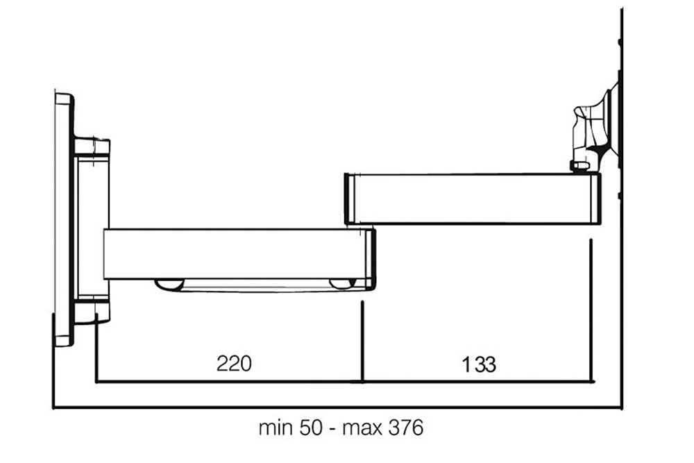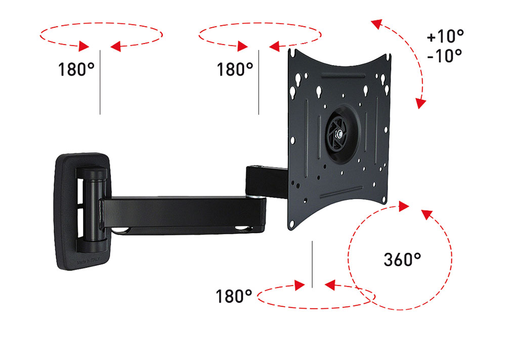 Držák navržený pro montáž standardních plochých televizí. Díky velkému rozsahu montážních rozměrů pro displeje (VESA 75x75 - VESA 200x200), vyhoví požadavkům na montáž nejrůznějších typů televizí s úhlopříčkou 10 - 40". Jeho 4 klouby (jeden kulový) umožňují dokonalé nastavení televize v prostoru. Základna ramene se montuje na stěnu.