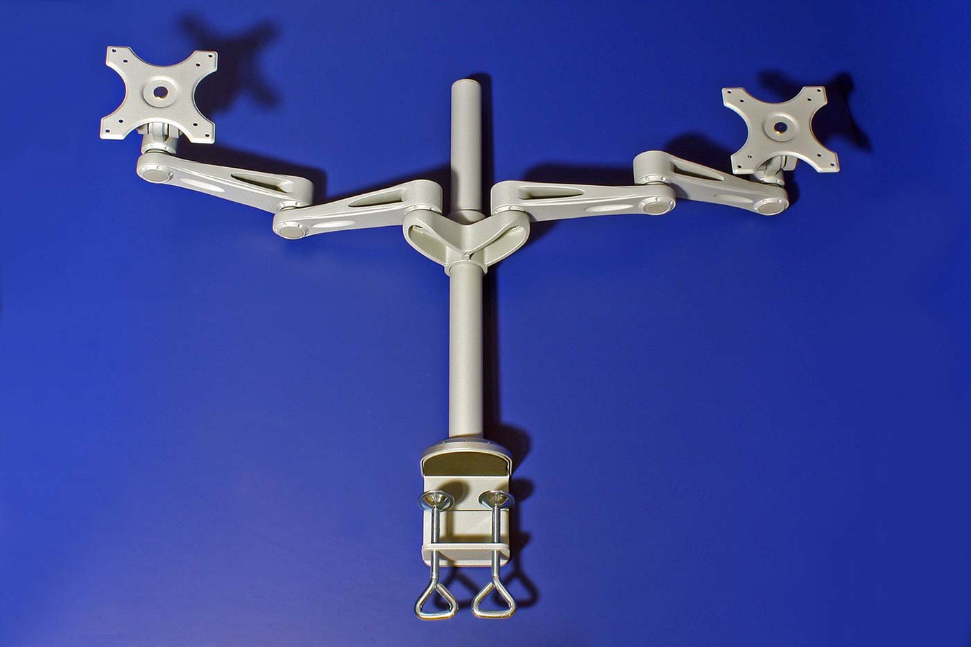 Držák 2 LCD displejů, 2 ramena 48cm, 4 klouby každé rameno. Montáž na stůl.