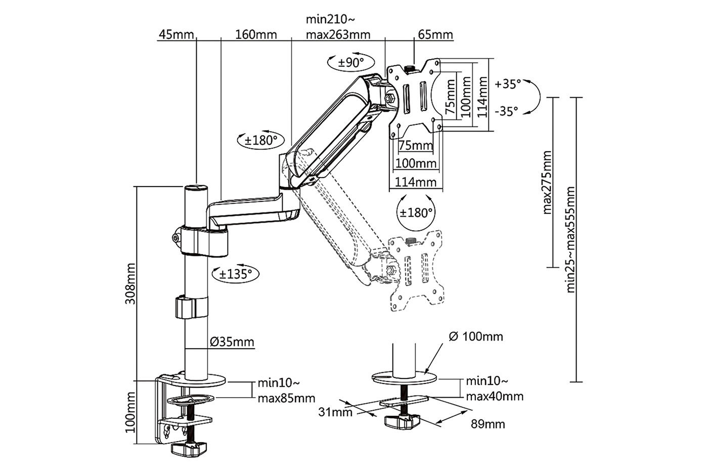 Použití: Pro montáž LCD monitoru na stůl. Díky 5 kloubům umožňuje přesné nastavení monitoru v prostoru.;