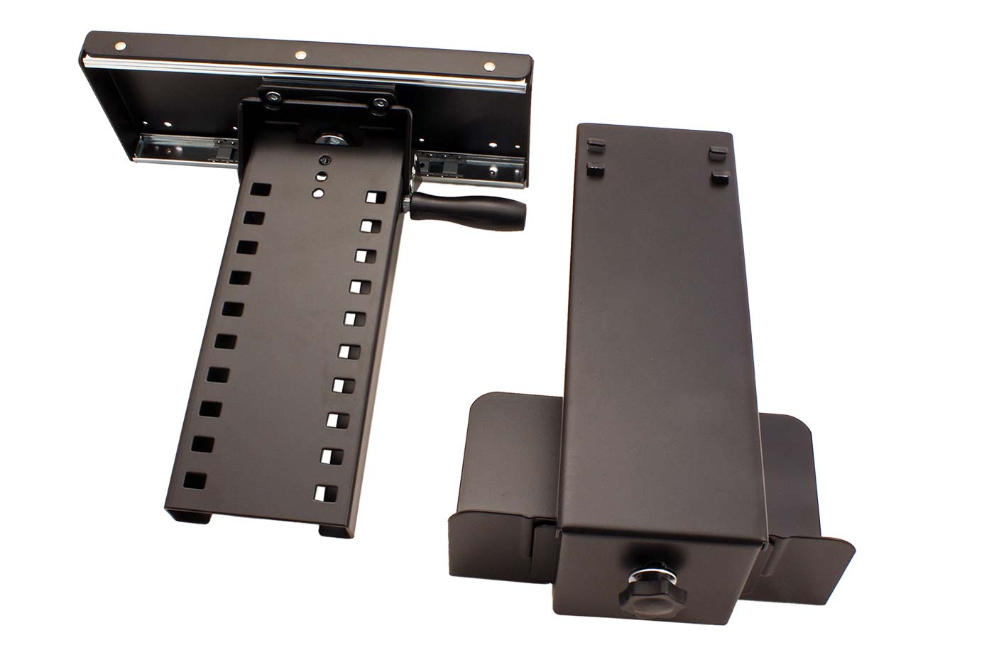 Držák na počítač montovaný pod desku stolu s možností výsuvu.;