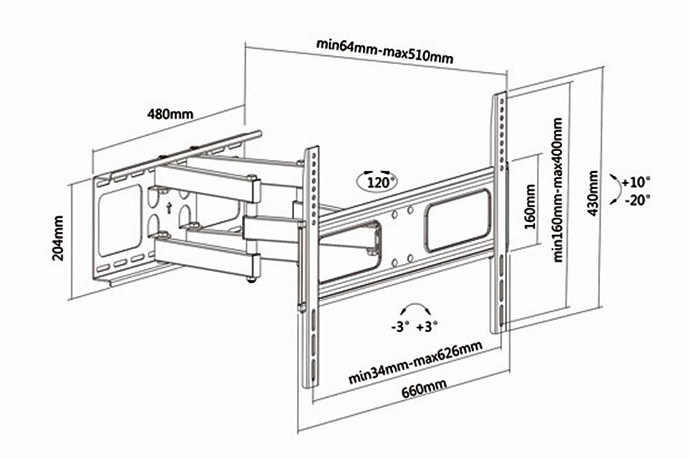 Použití: Pro zavěšení plochého displeje nebo televize o úhlopříčce 37-70" (94 - 178cm).;