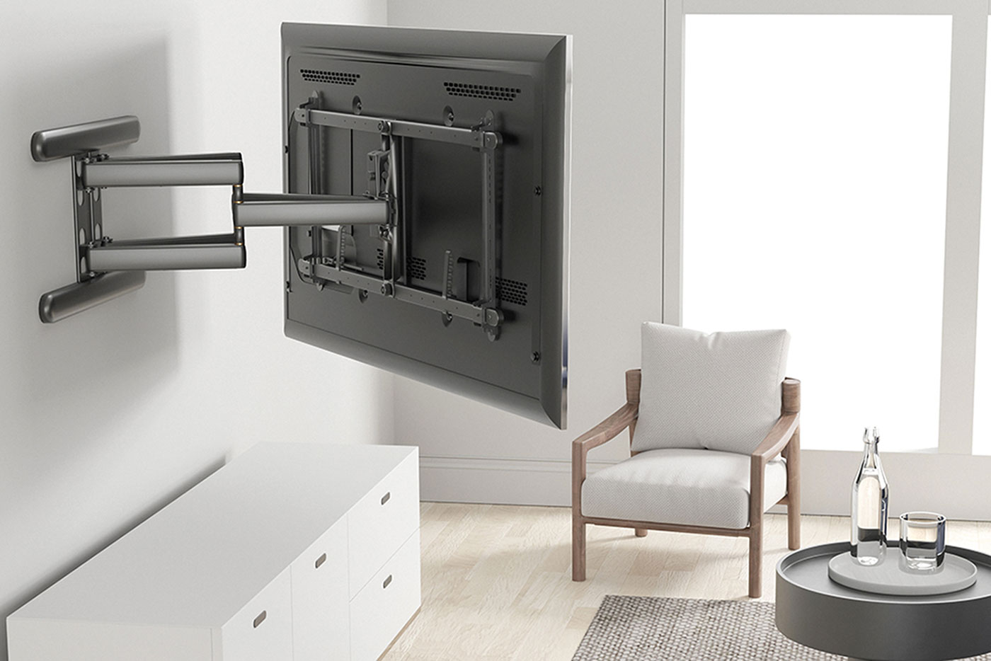 Pro zavěšení plochého displeje nebo televize o úhlopříčce až 80" (203cm) na stěnu s možností naklápění.