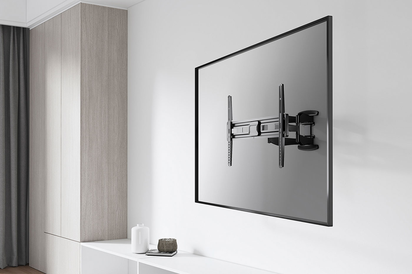 Pro zavěšení plochého displeje nebo televize o úhlopříčce až 80" (203cm) na stěnu s možností naklápění.