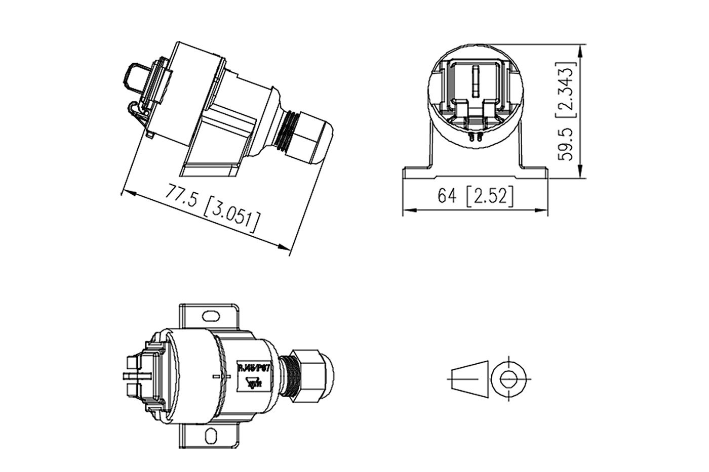 Další informace: - systém vodotěsného spojení IP67 V.6 - otvor průměr 18mm, západky s možností zabezpečení proti rozevření