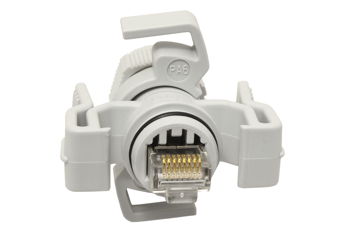 Konektor RJ45 v ochranném vodotěsném pouzdře s Metz sytémem IP67 V.6. Umožňuje připojení ethernet kabelu v prostředí s vysokou vlhkostí a prašností do zásuvky odpovídajícího systému bez porušení ochrany před vnějším prostředím.
