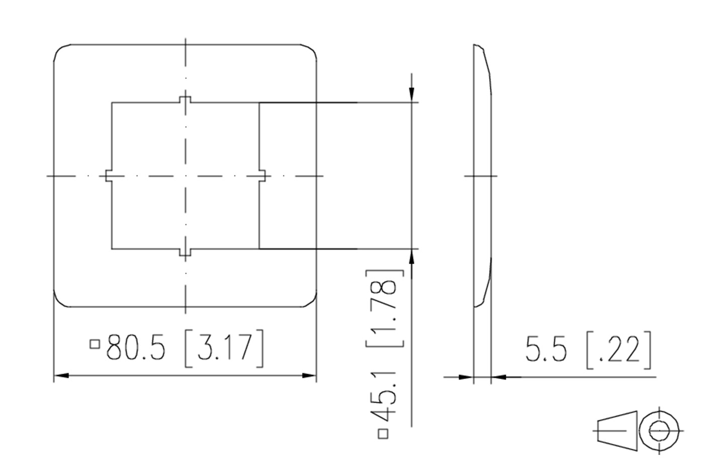 Rámeček pro čelo zásuvky 80 x 80mm na 45 x 45mm.