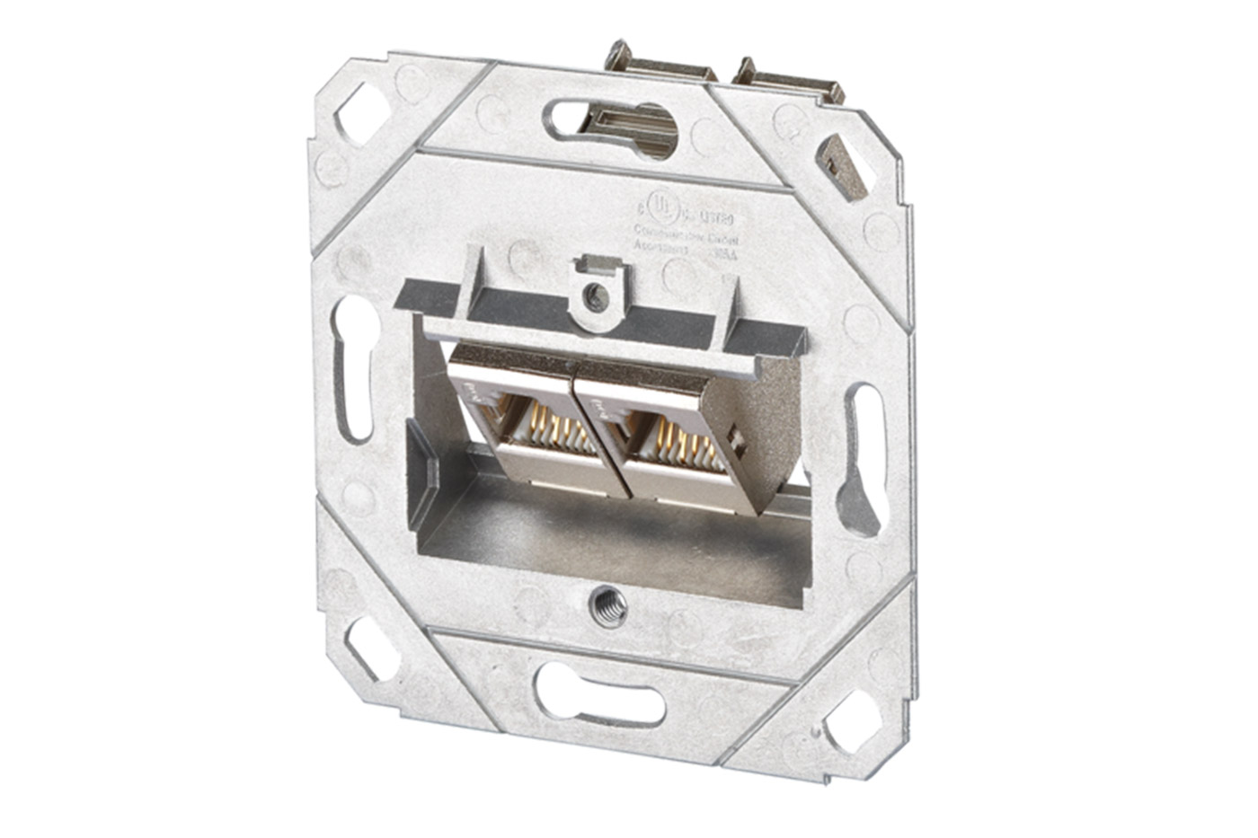 Stíněná zásuvka osazená 2x MC modul kat. 6a. Montáž pod omítku.Bez plstového čela.;