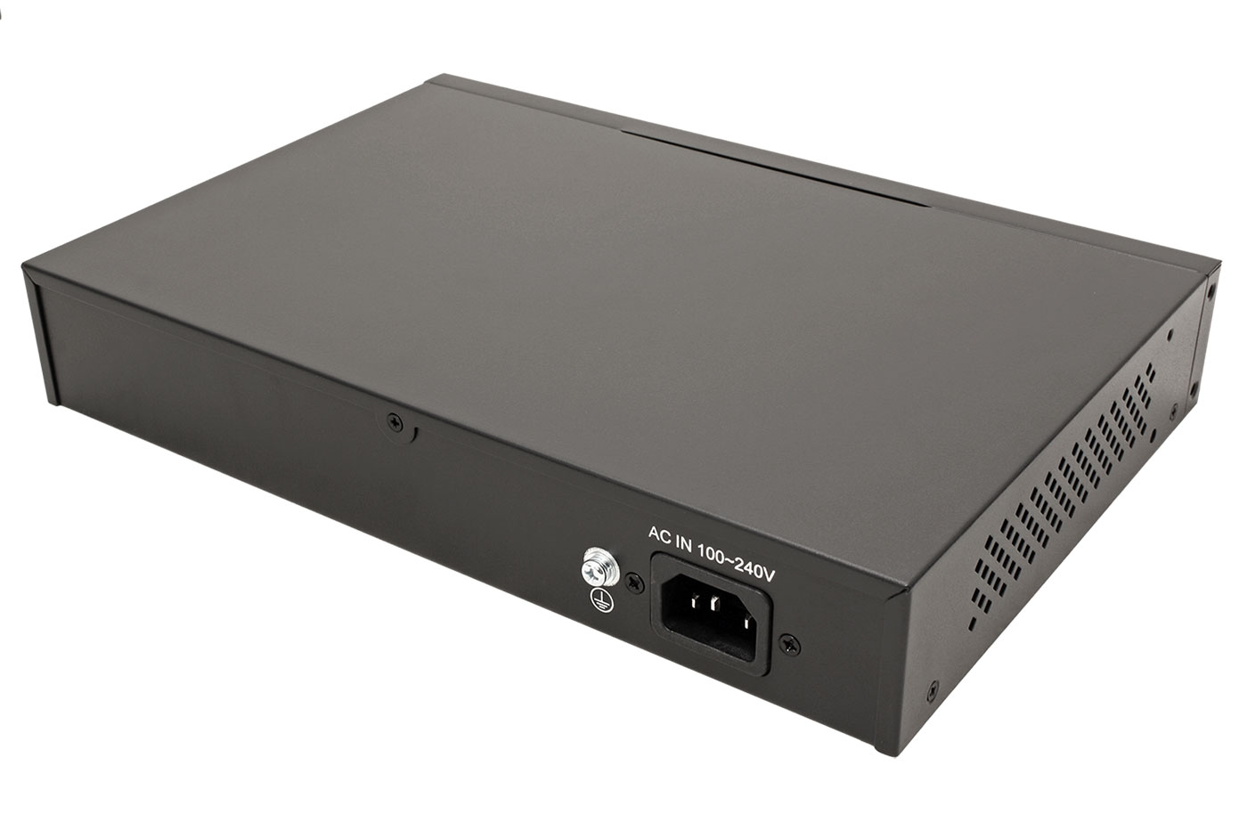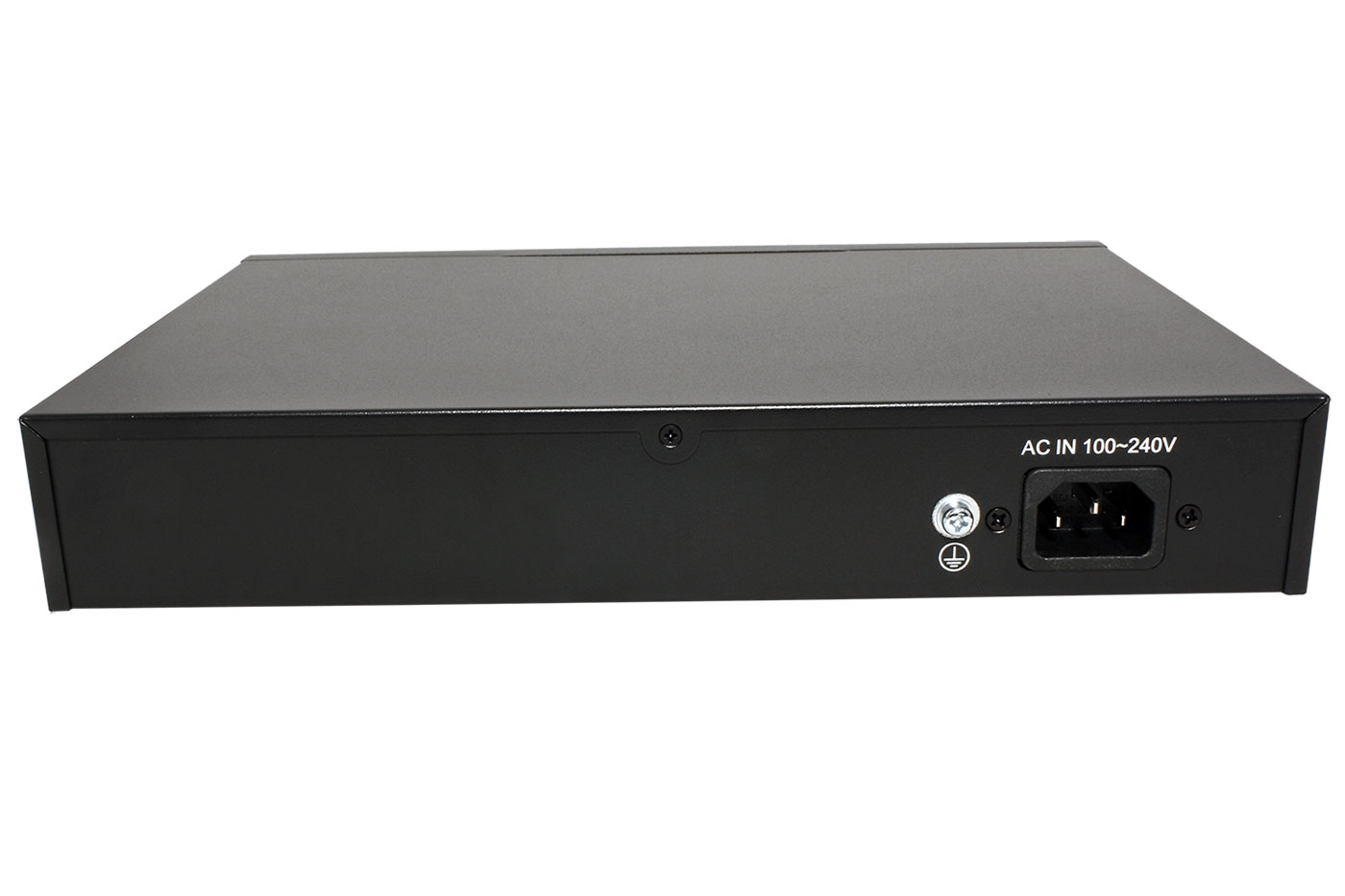 Obsah balení: přepínač, konzole pro montáž do rozvaděče, síťový napájecí kabel, 4x gumová nalepovací nožka;