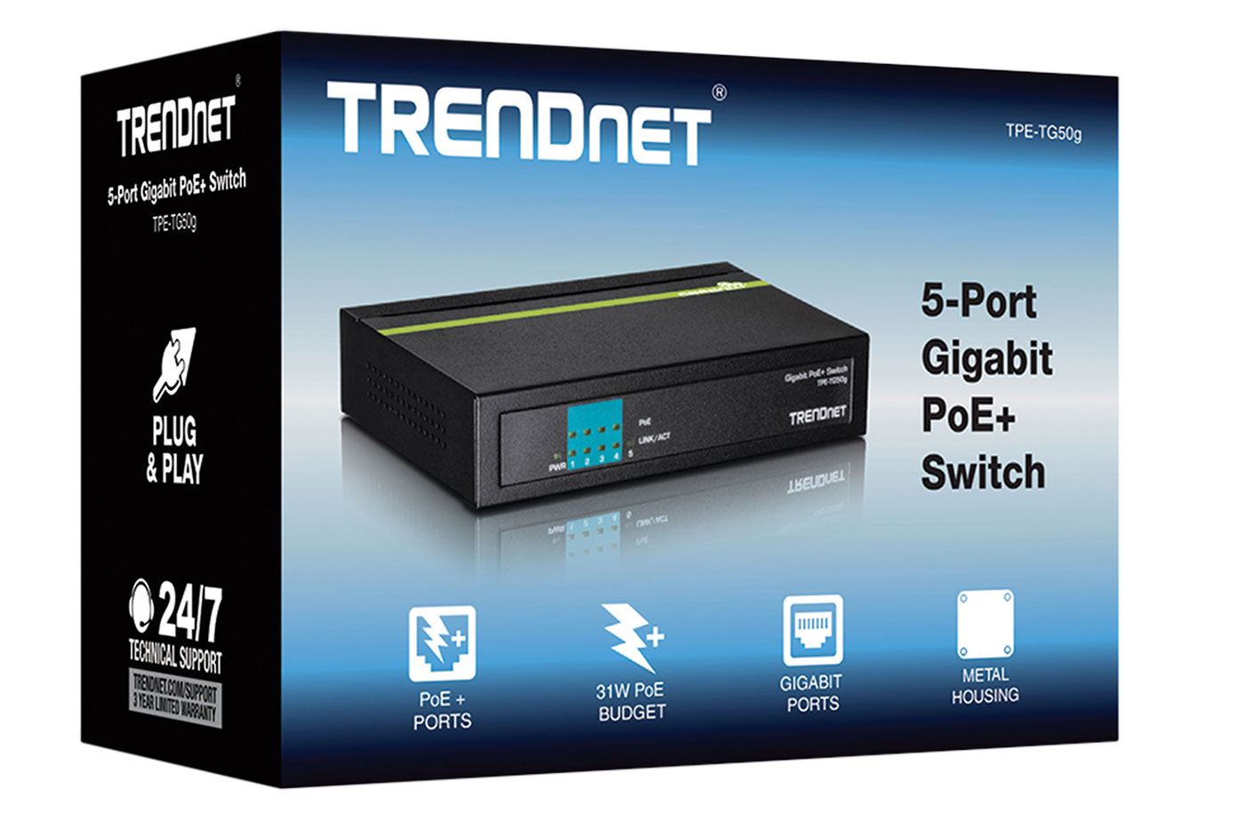 TRENDnet Ethernet přepínač 1Gb, 5 portů, 4x PoE+ (TPE-TG50g)