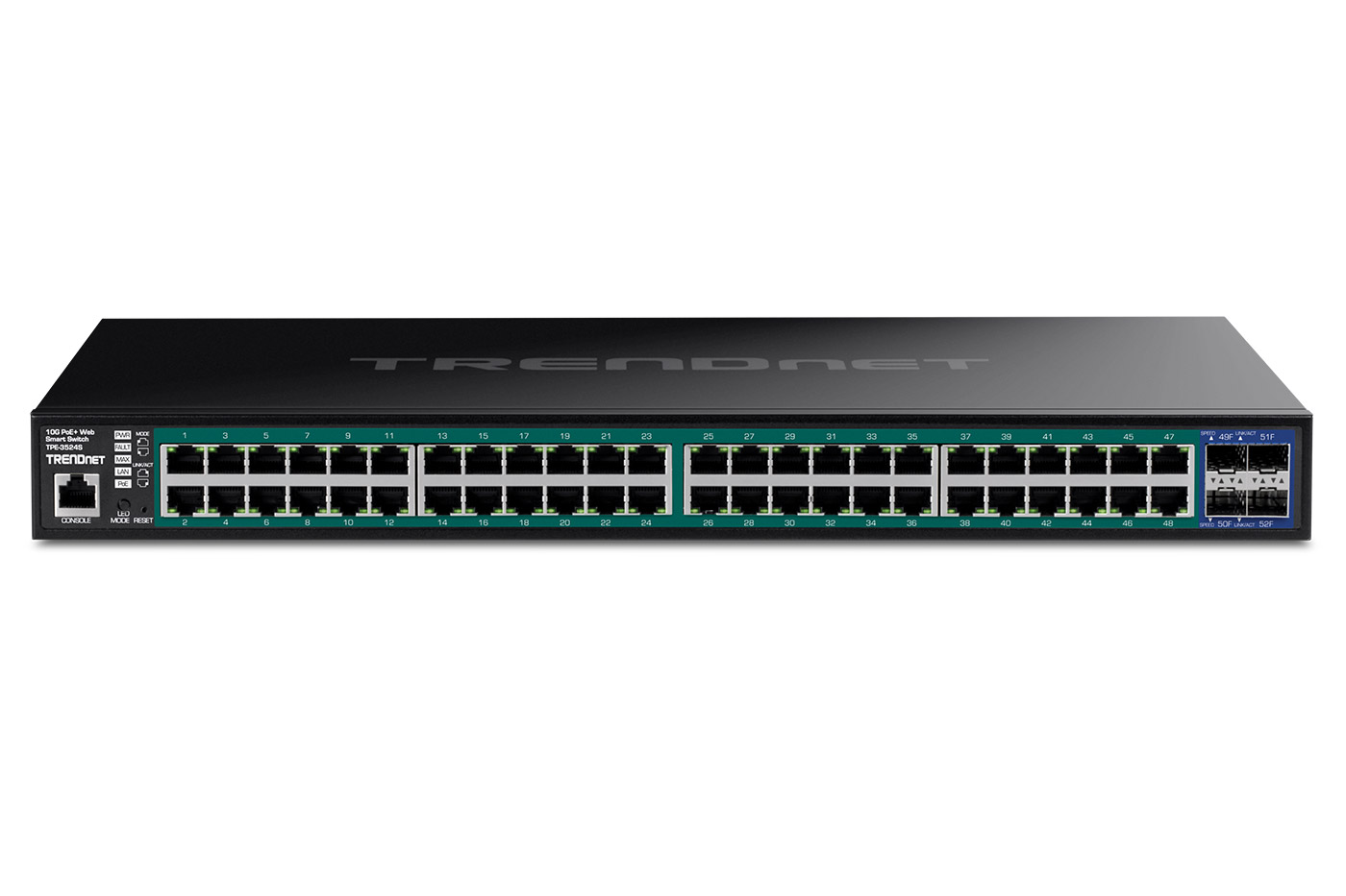 Ethernet přepínač v kovovém provedení pro zvětšení přípojných míst v síti. Určený pro montáž do rozvaděče. Je osazen celkem 48 porty 1Gb. Obsahuje další 4 porty se sloty SFP+ (až 10Gb) umožňující snadné připojení k optické počítačové síti. Přepínač je web smart spravovatelný a nabízí mnoho funkcí běžných až u plně spravovatelných L2 přepínačů (802.1Q, VLAN, agregace…). Tichý provoz zaručuje inteligentní řízení ventilátorů.
