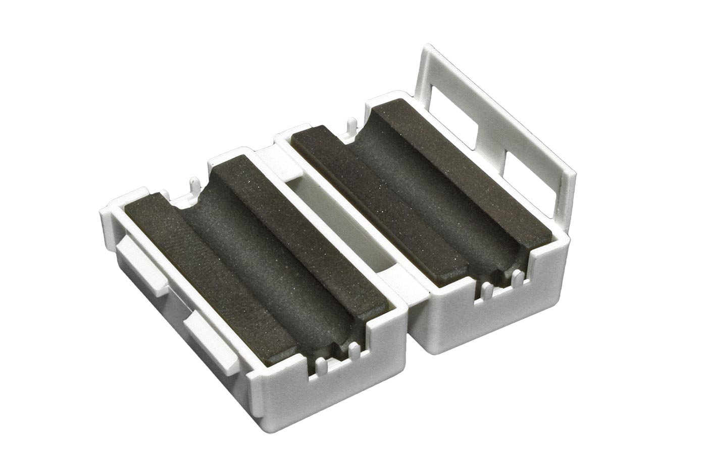 Feritové jádro v plastovém obalu s možností dodatečné montáže na kabel (zaklapnutí).